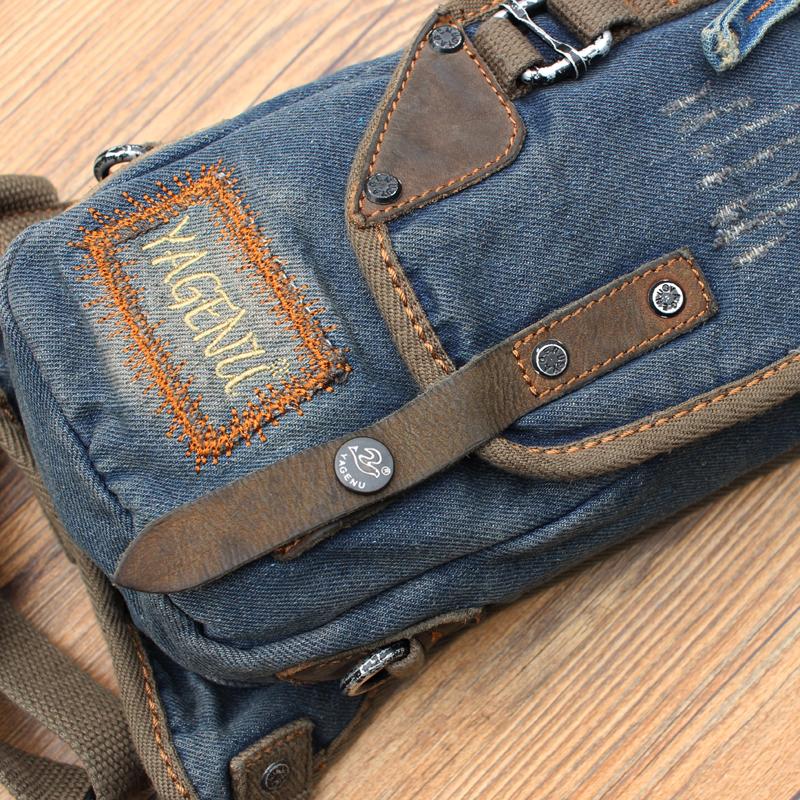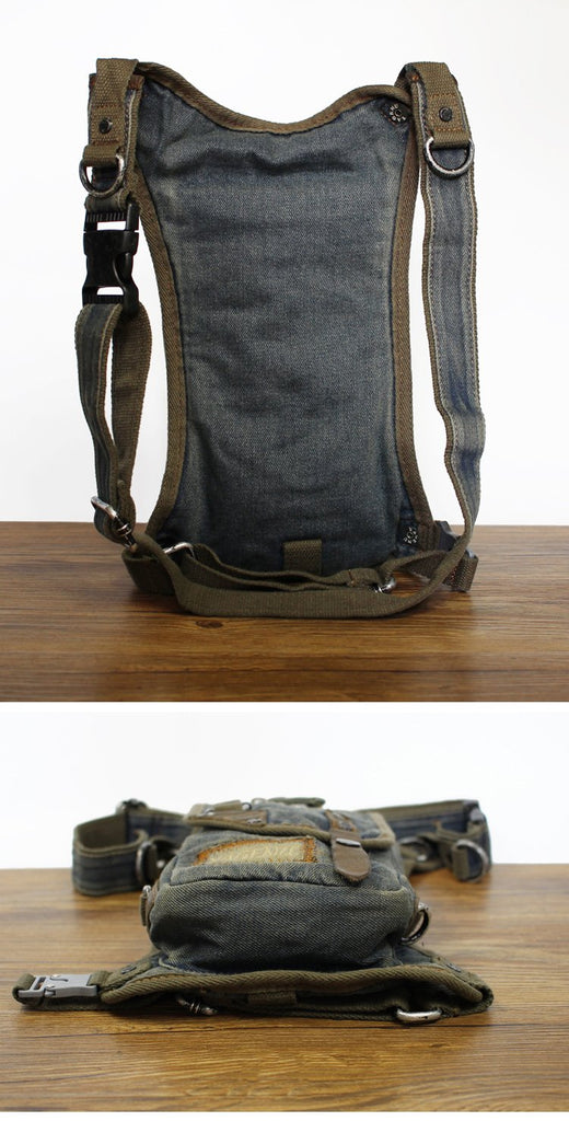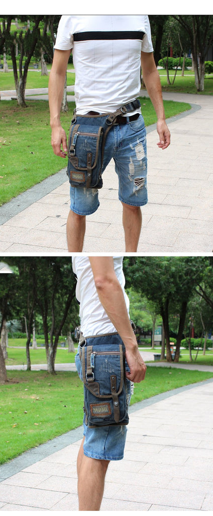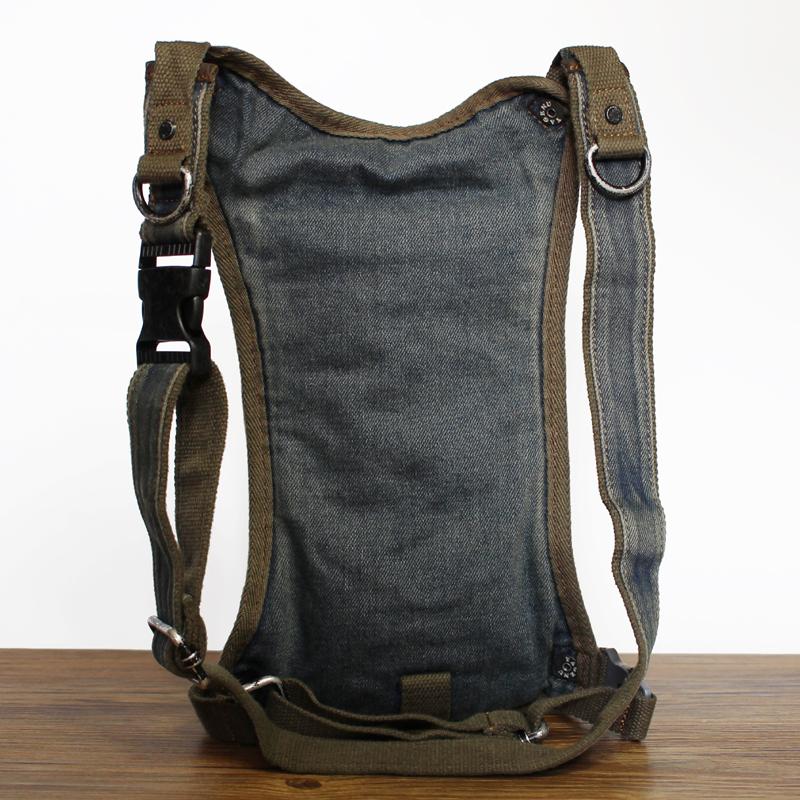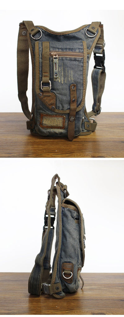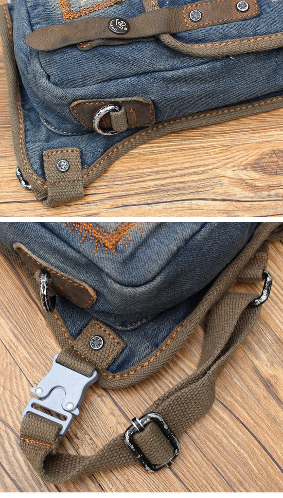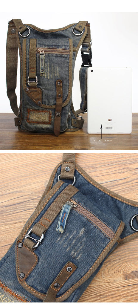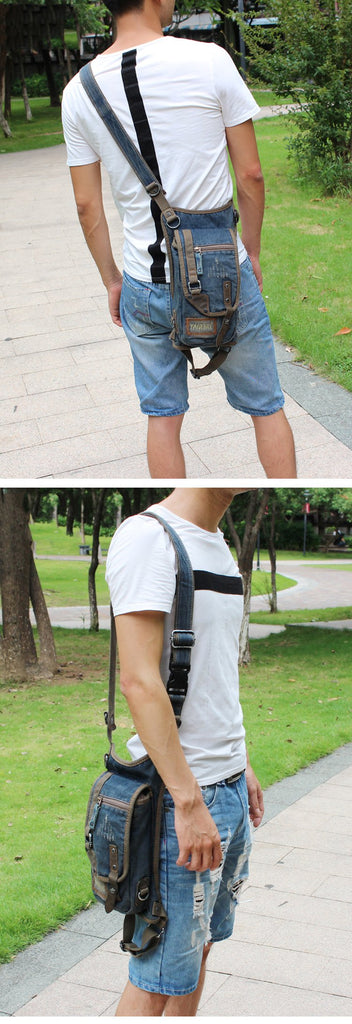 Design: Blue Jean Canvas Mens Cell Phone Waist Bag Chest Bag Messenger Bag For Men