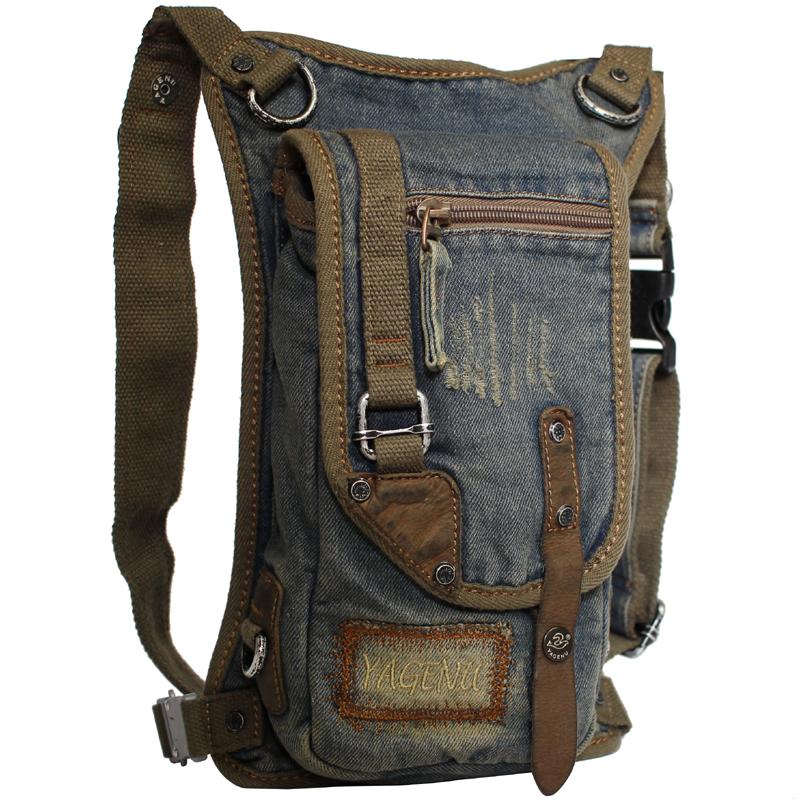 Style: Blue Jean Canvas Mens Cell Phone Waist Bag Chest Bag Messenger Bag For Men