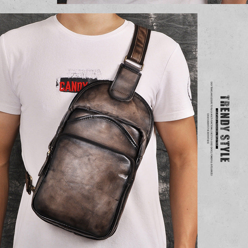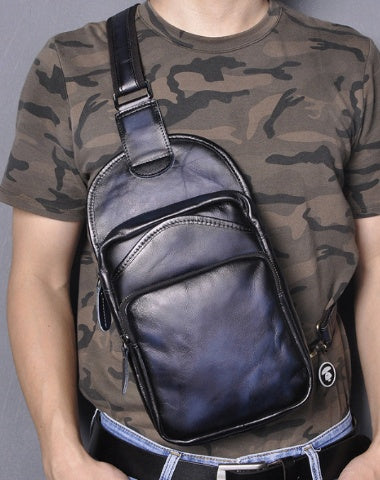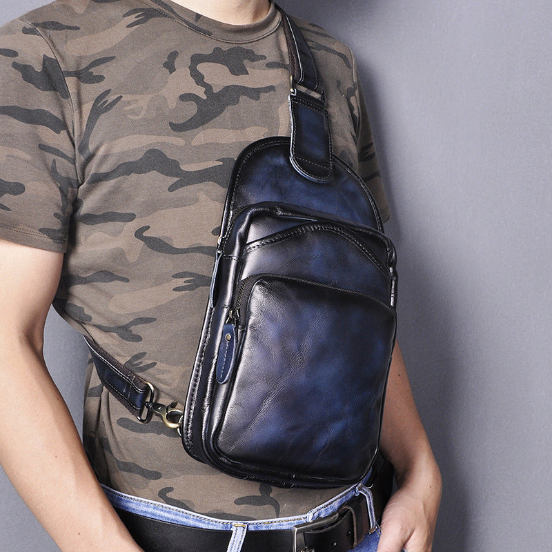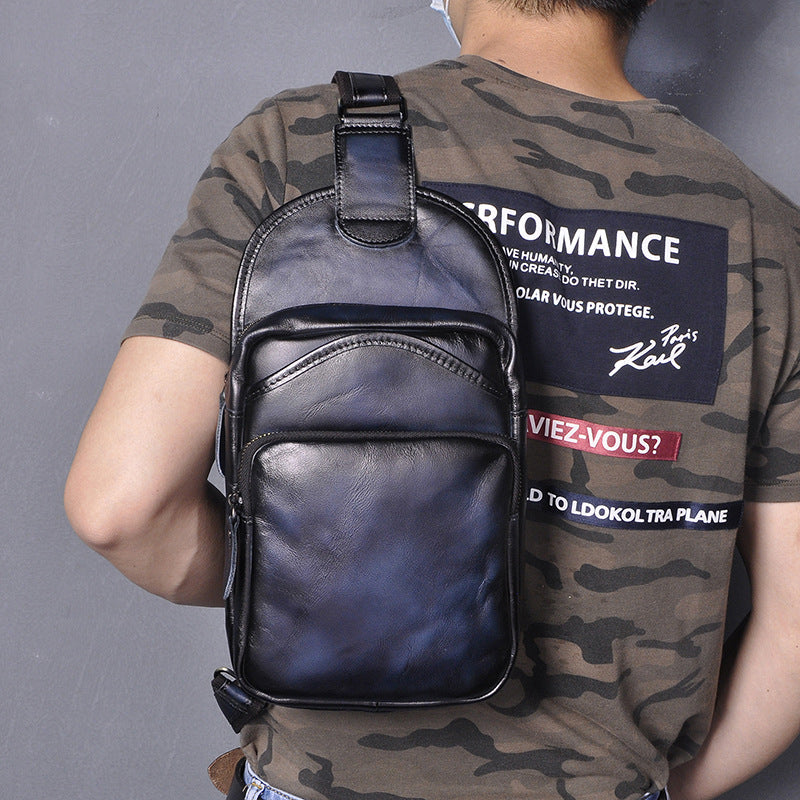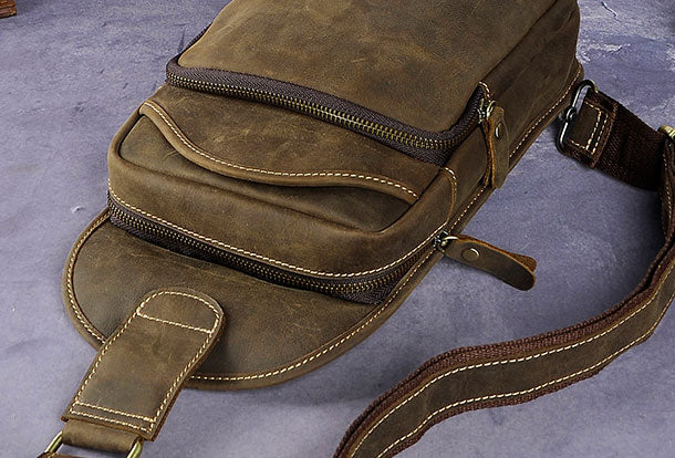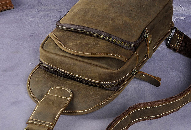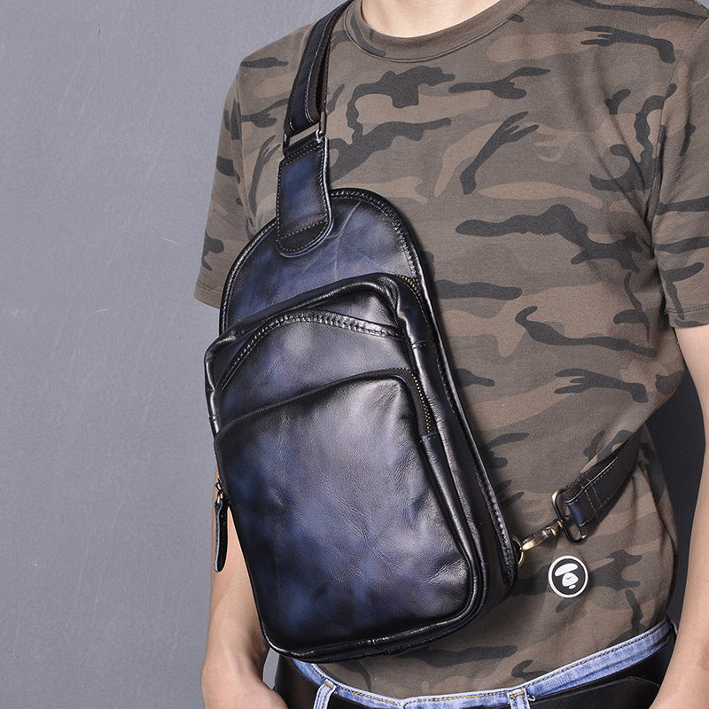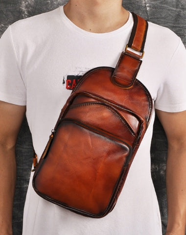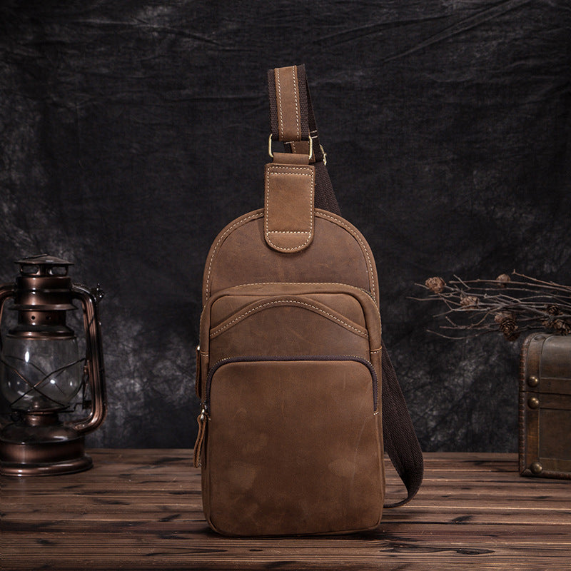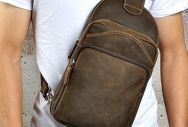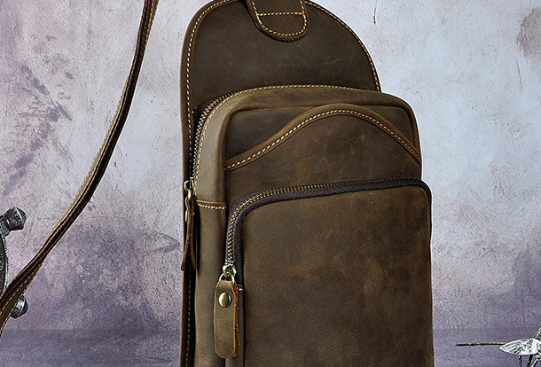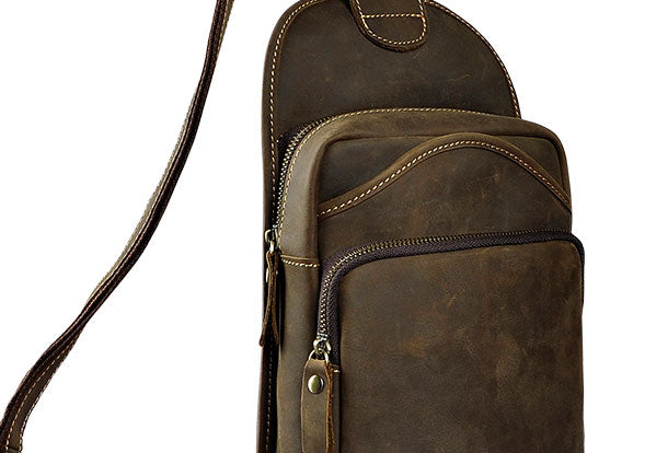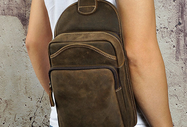 Style: Cool Leather Sling Bag Mens Sling Crossbody Backpack Chest Bag For Men