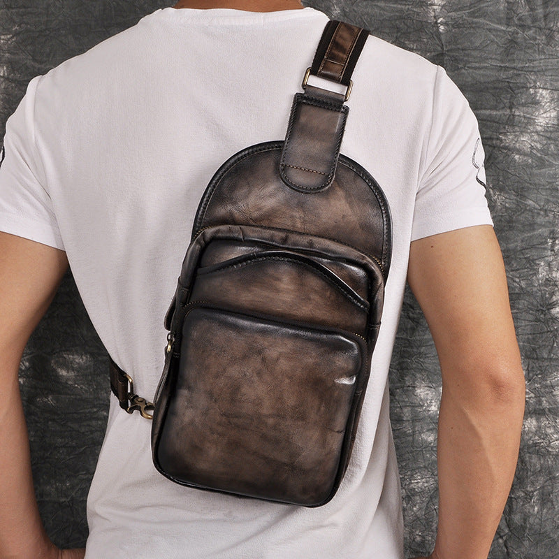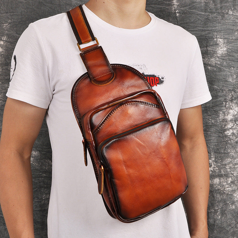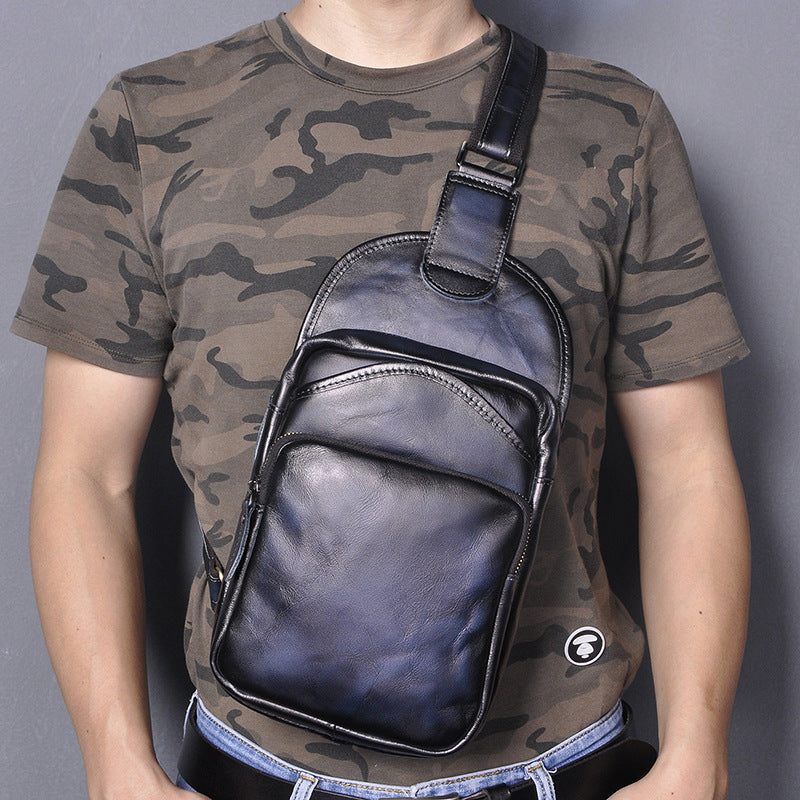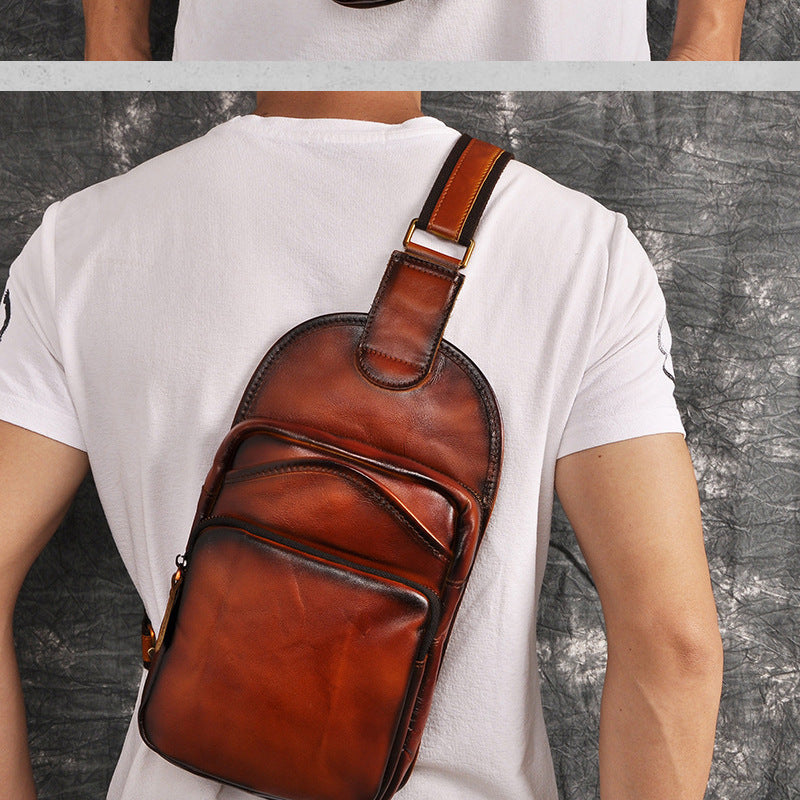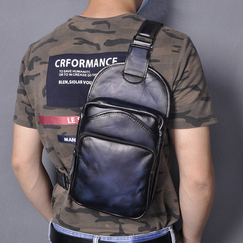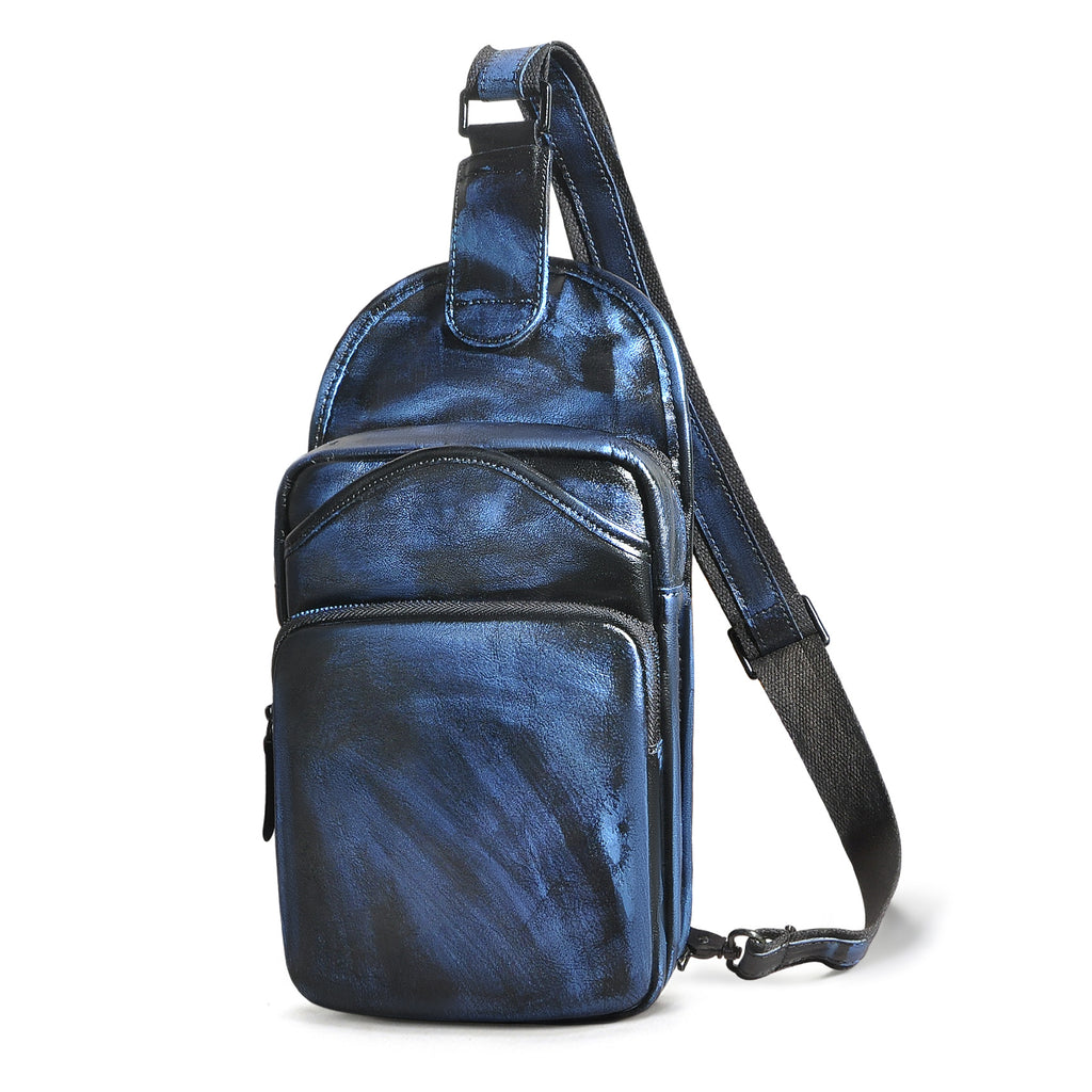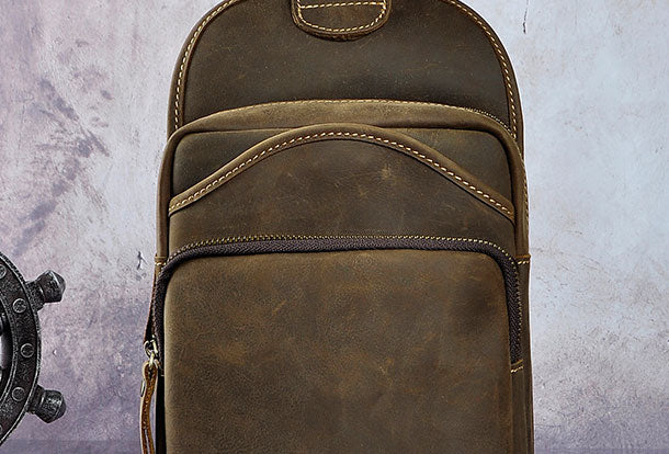 Style: Cool Leather Sling Bag Mens Sling Crossbody Backpack Chest Bag For Men