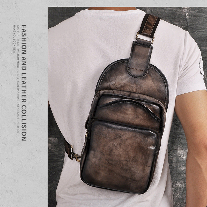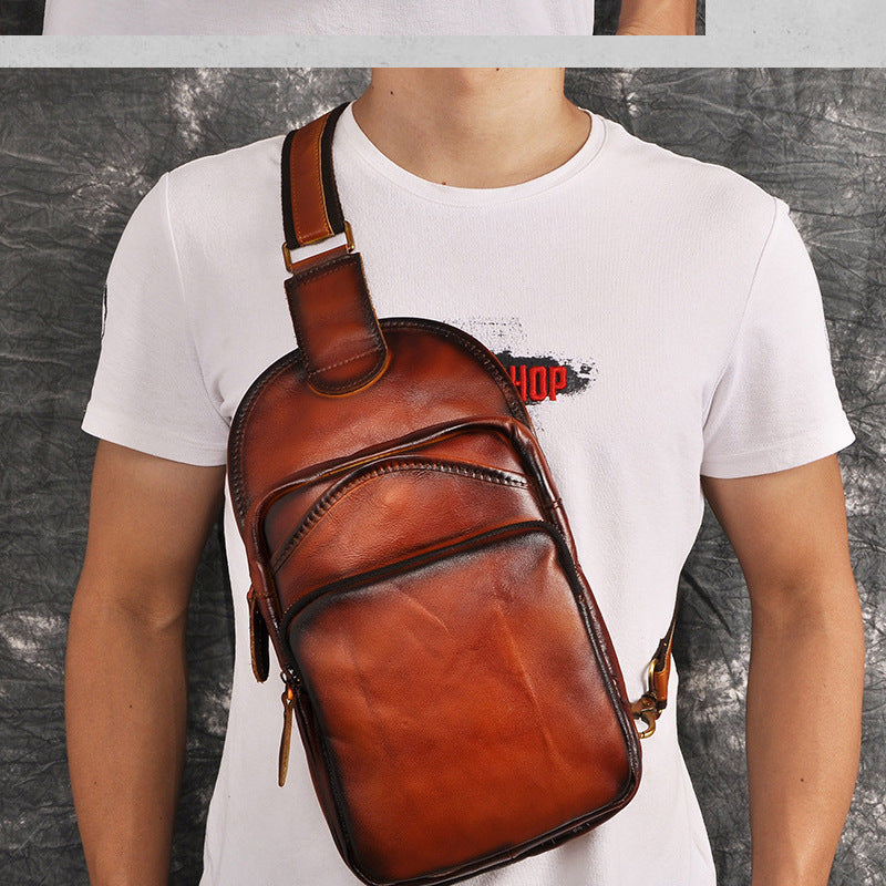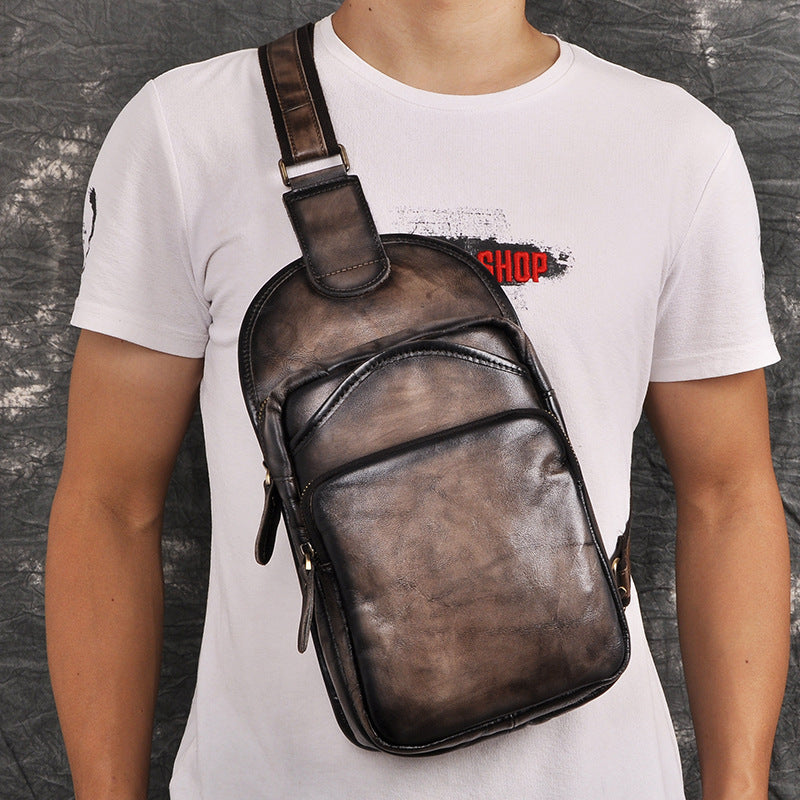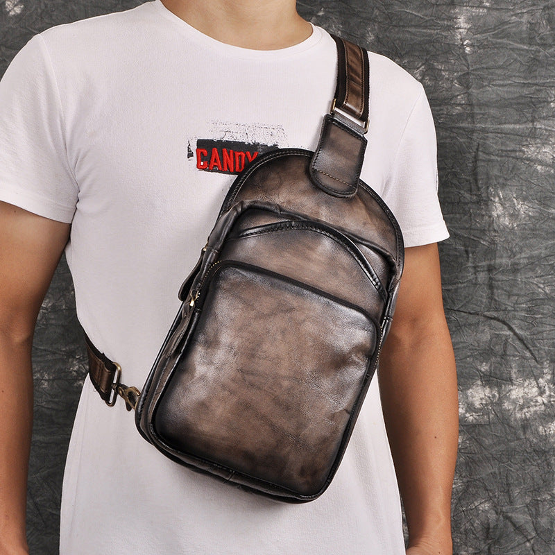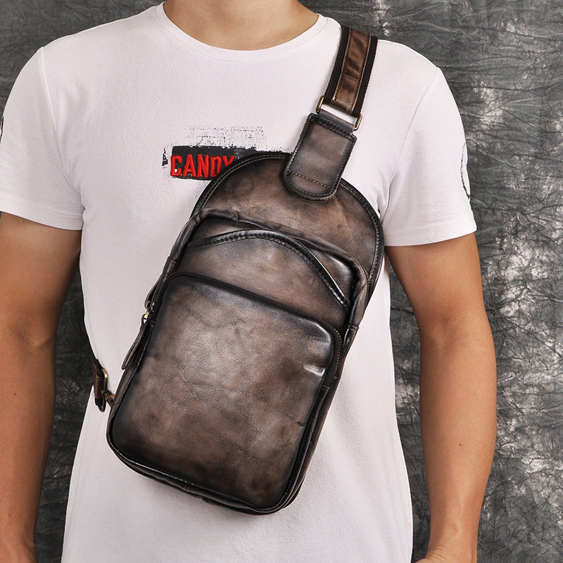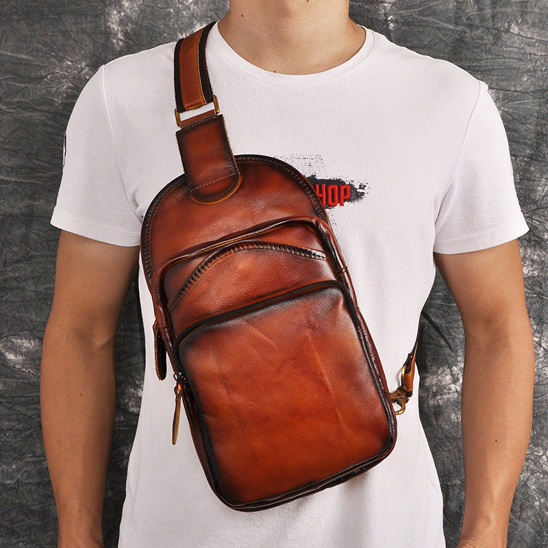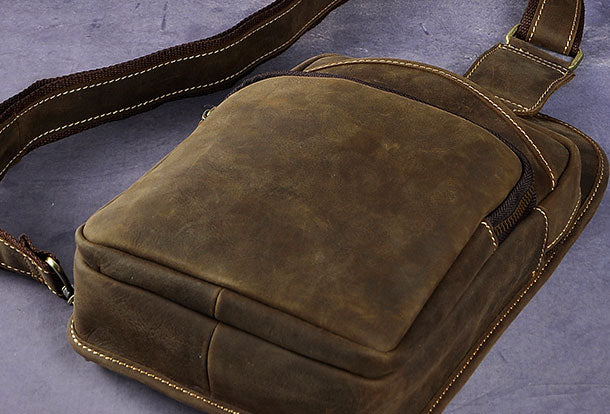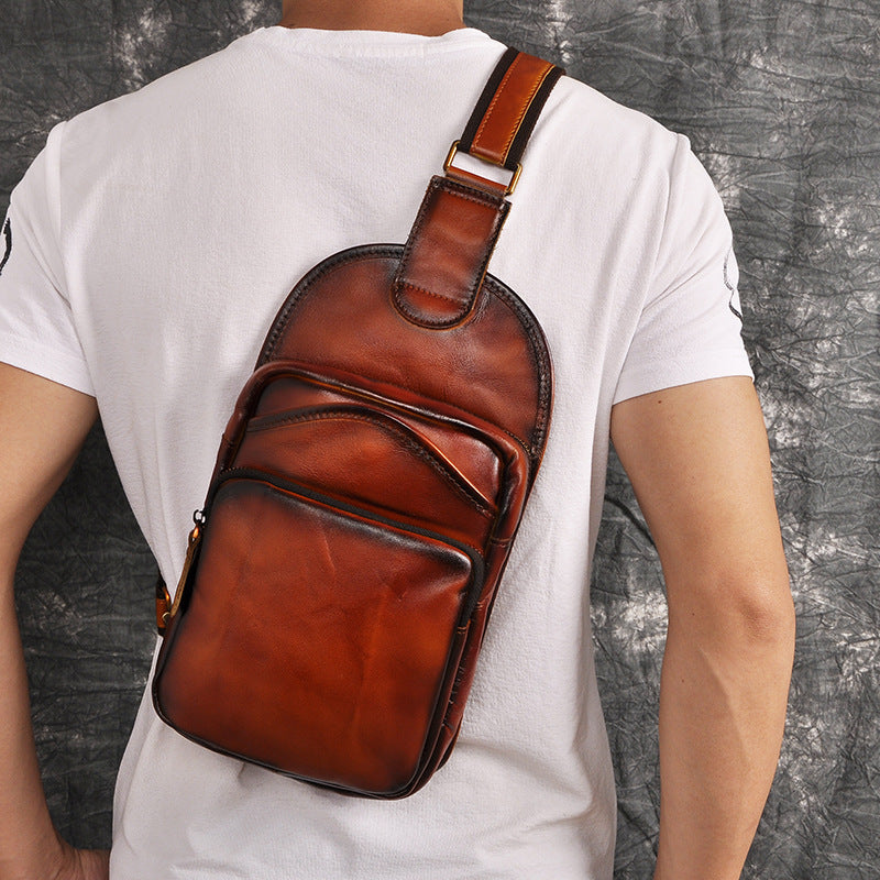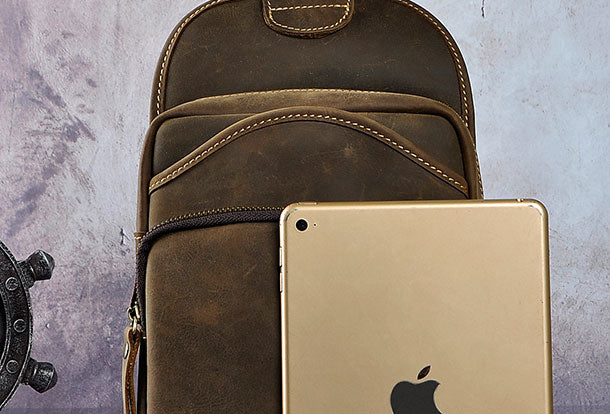 Style: Cool Leather Sling Bag Mens Sling Crossbody Backpack Chest Bag For Men