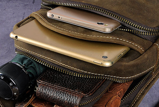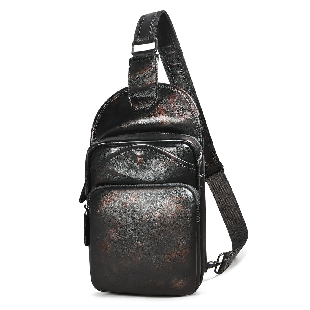 Design: Cool Leather Sling Bag Mens Sling Crossbody Backpack Chest Bag For Men