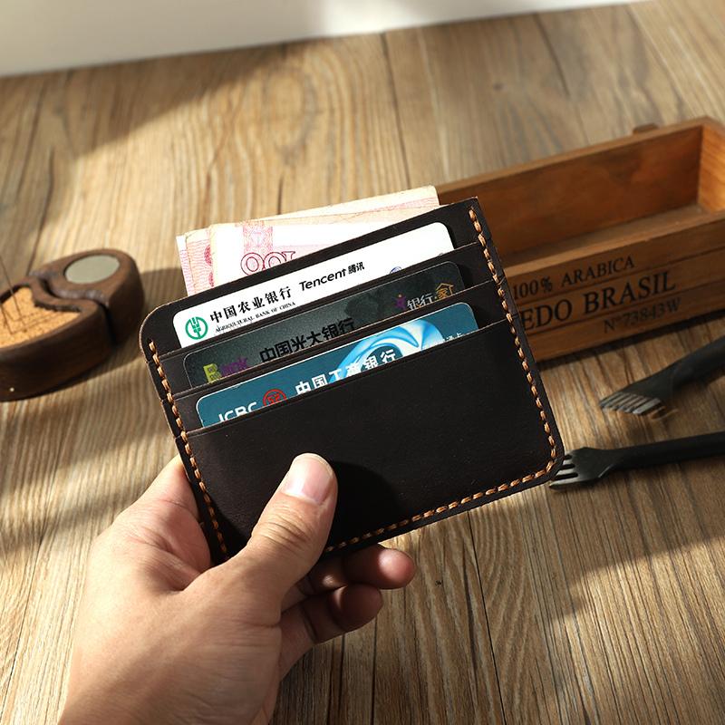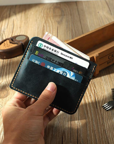 Style: Handmade Black Leather Mens Front Pocket Wallets Personalized Slim Card Wallets for Men