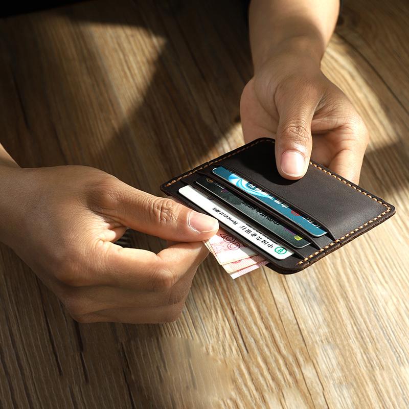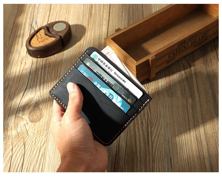 Design: Handmade Black Leather Mens Front Pocket Wallets Personalized Slim Card Wallets for Men
