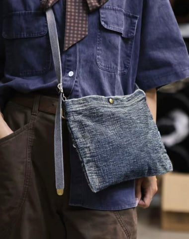 Blue Small Denim Crossbody Bag for Men Small Messenger Bag Womens Jeans Shoulder Bag