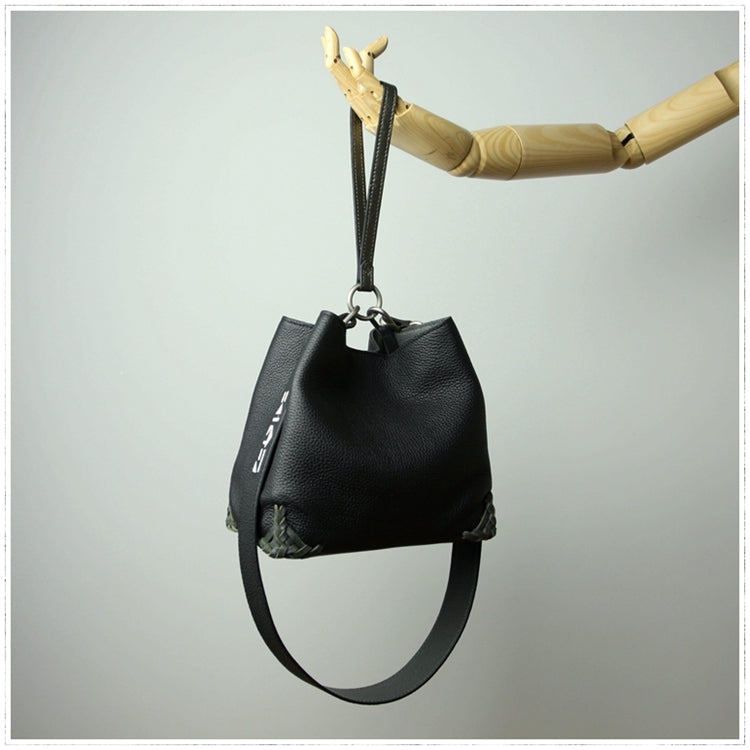 Design: Blue Womens Leather Bucket Shoulder Purse Womens Barrel Leather Handbag Shoulder Bag for Ladies