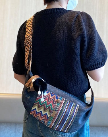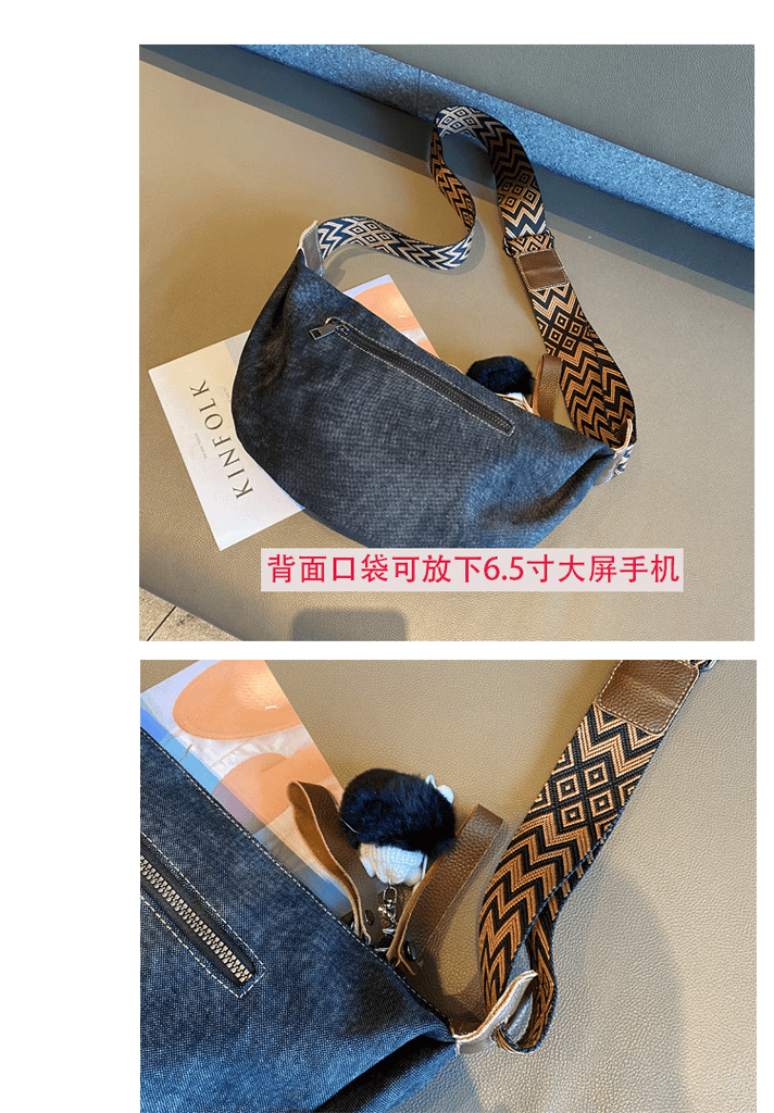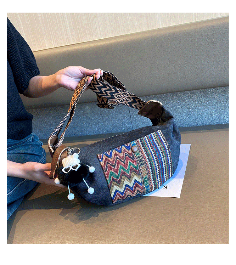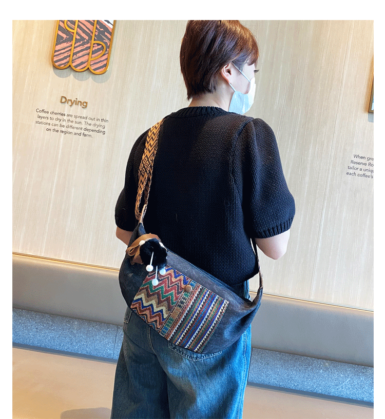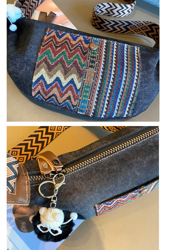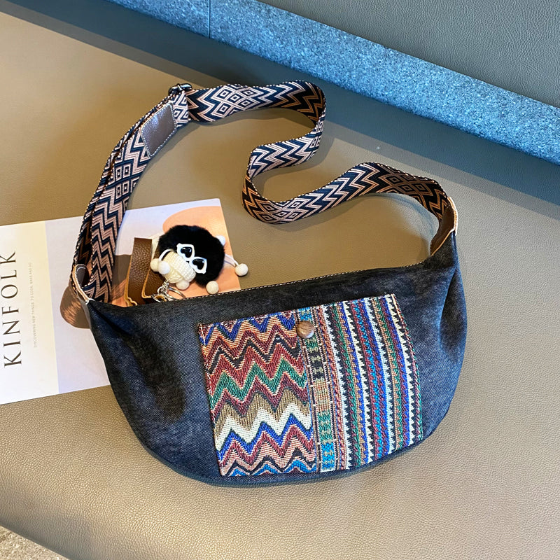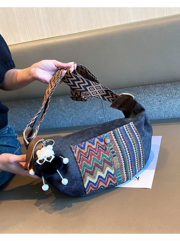 Design: Bohemian Canvas Saddle Shoulder Bag Boho Embroidery Canvas Saddle Crossbody Bag