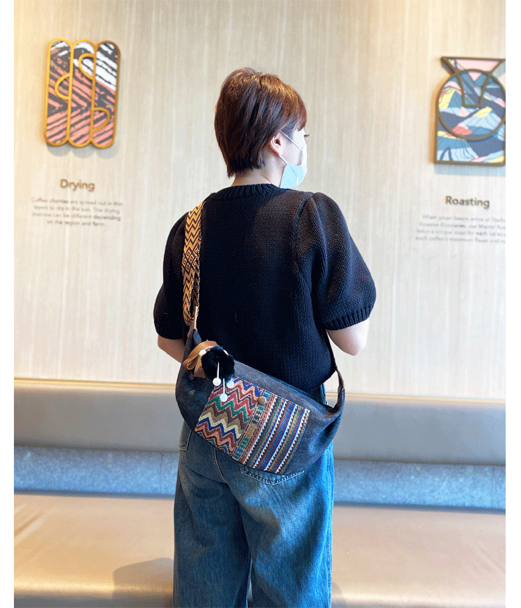 Style: Bohemian Canvas Saddle Shoulder Bag Boho Embroidery Canvas Small Crossbody Bag