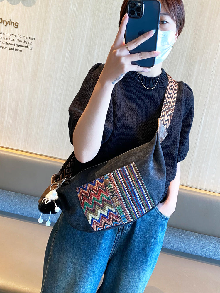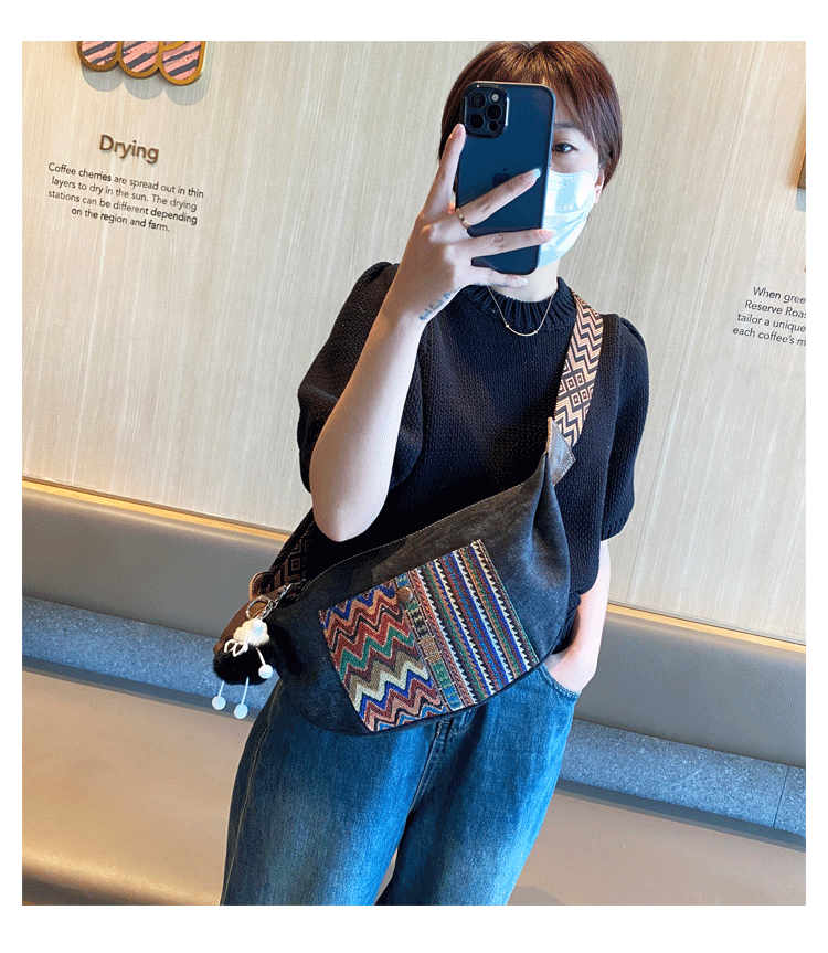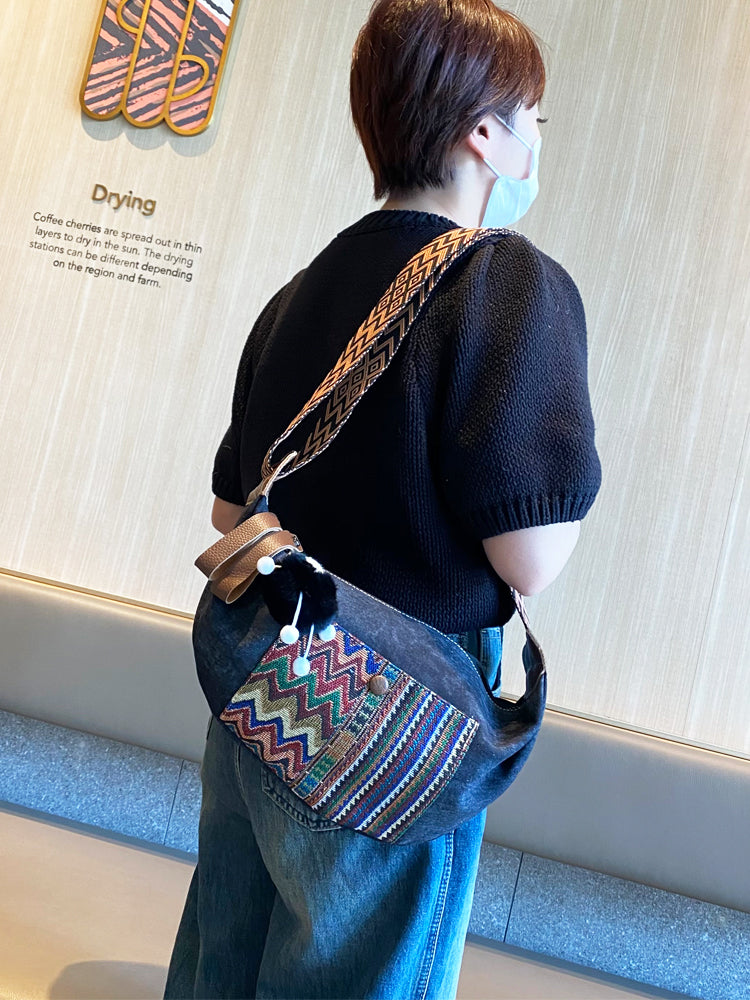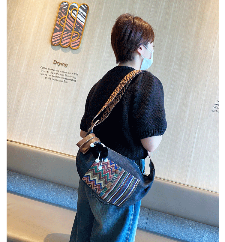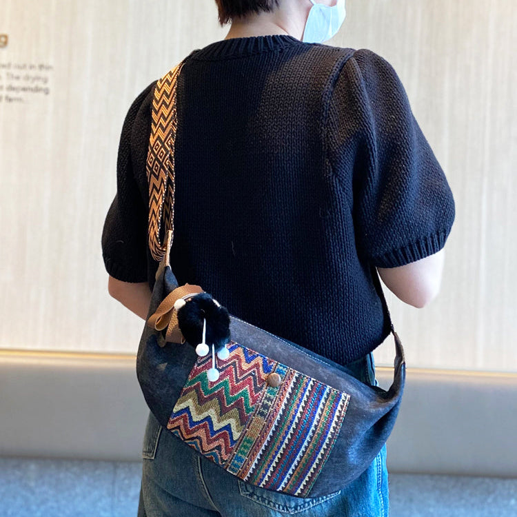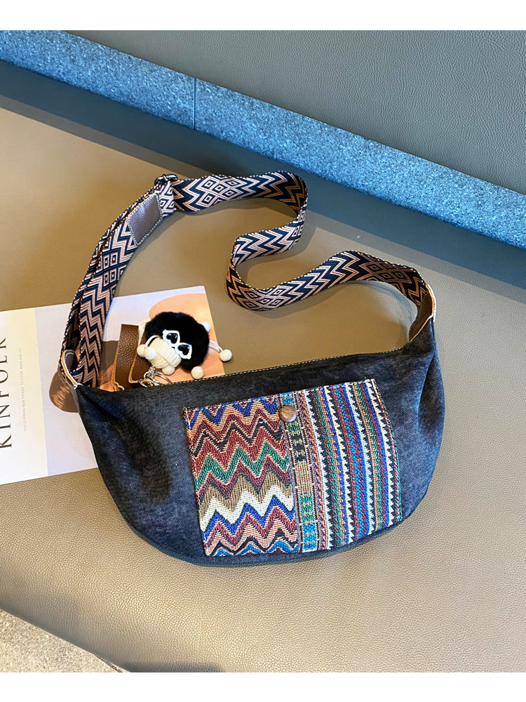 Design: Bohemian Canvas Saddle Shoulder Bag Boho Embroidery Canvas Crossbody Bag