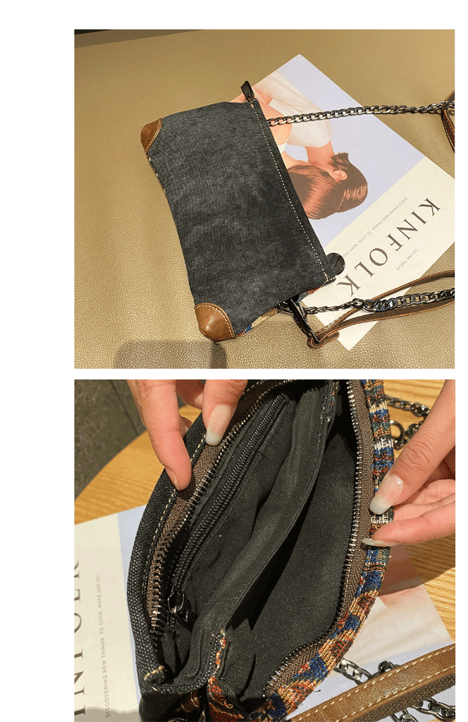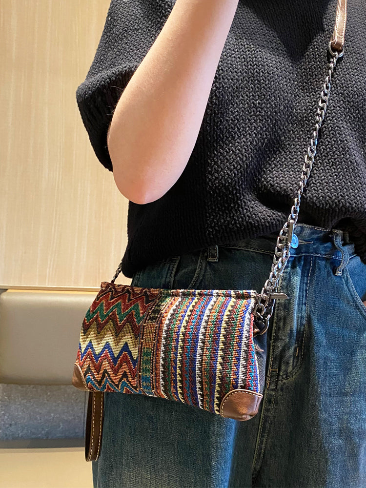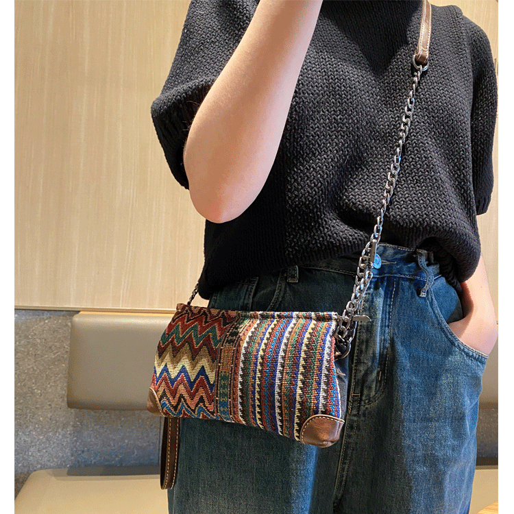 Design: Bohemian Canvas Small Shoulder Chain Bag Boho Embroidery Canvas Small Chain Crossbody Bag