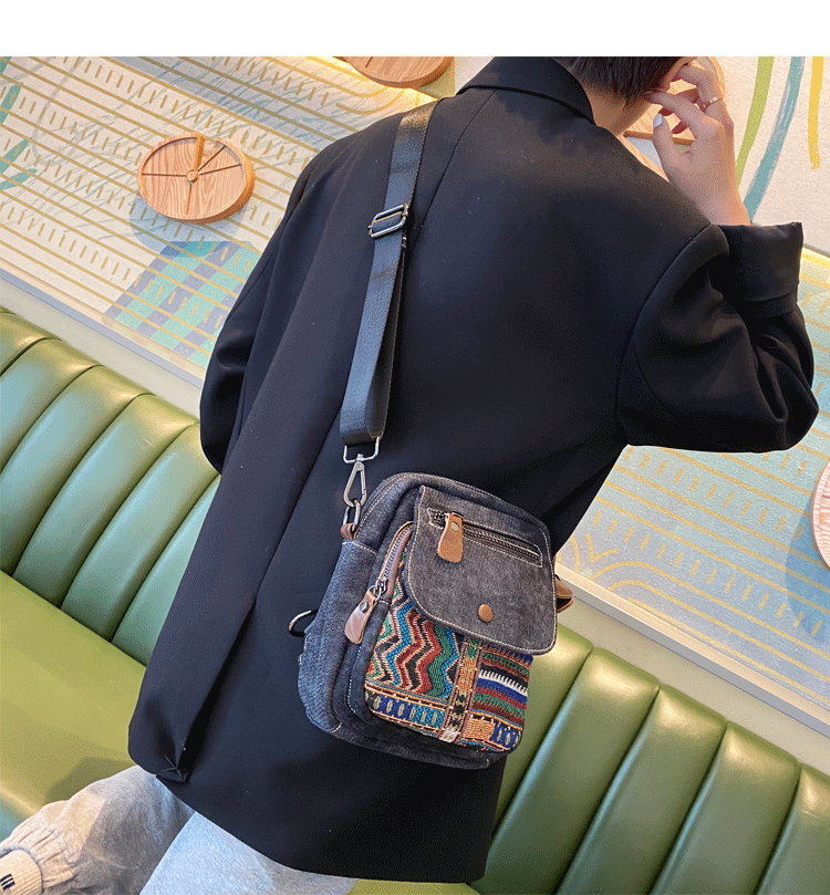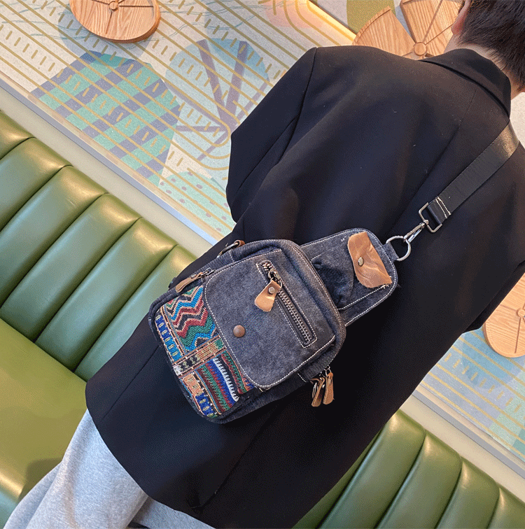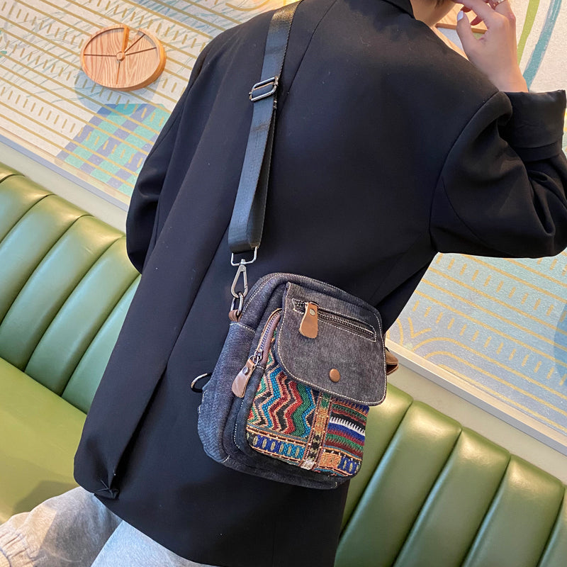 Design: Boho Canvas Sling Bag Crossbody Backpack Canvas Boho Embroidery Shoulder Bag Crossbody Bag