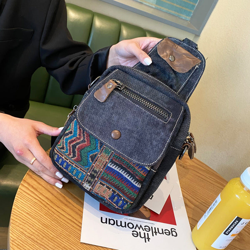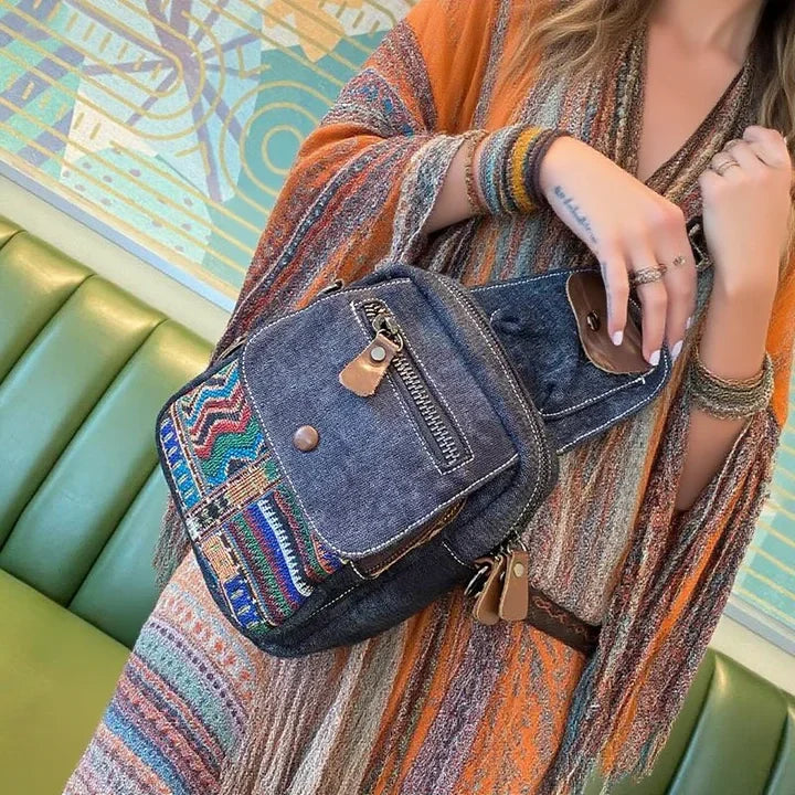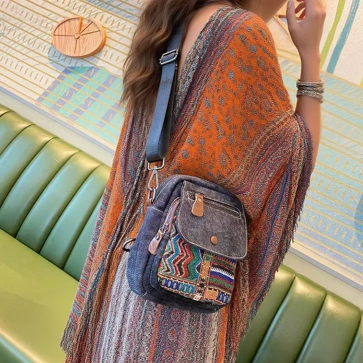 Boho Canvas Sling Bag Crossbody Backpack Women Canvas Boho Embroidery Shoulder Bag Crossbody Bag