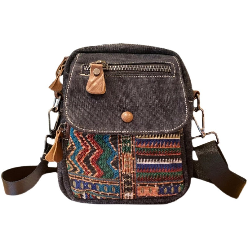 Style: Boho Canvas Sling Bag Crossbody Backpack Canvas Boho Embroidery Shoulder Bag Crossbody Bag
