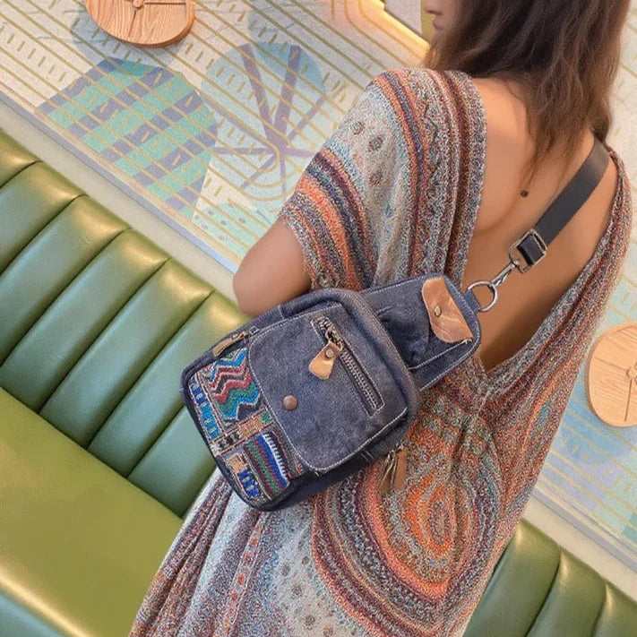Design: Boho Canvas Sling Bag Crossbody Backpack Canvas Boho Embroidery Shoulder Bag Crossbody Bag