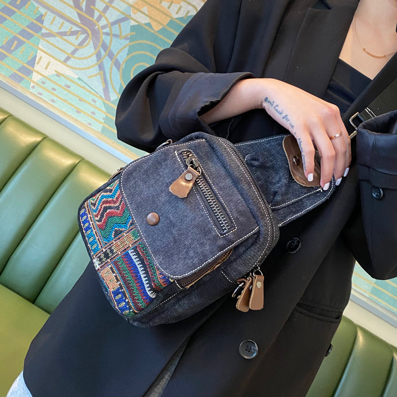 Boho Canvas Sling Bag Crossbody Backpack Women Canvas Embroidery Boho Crossbody Bag