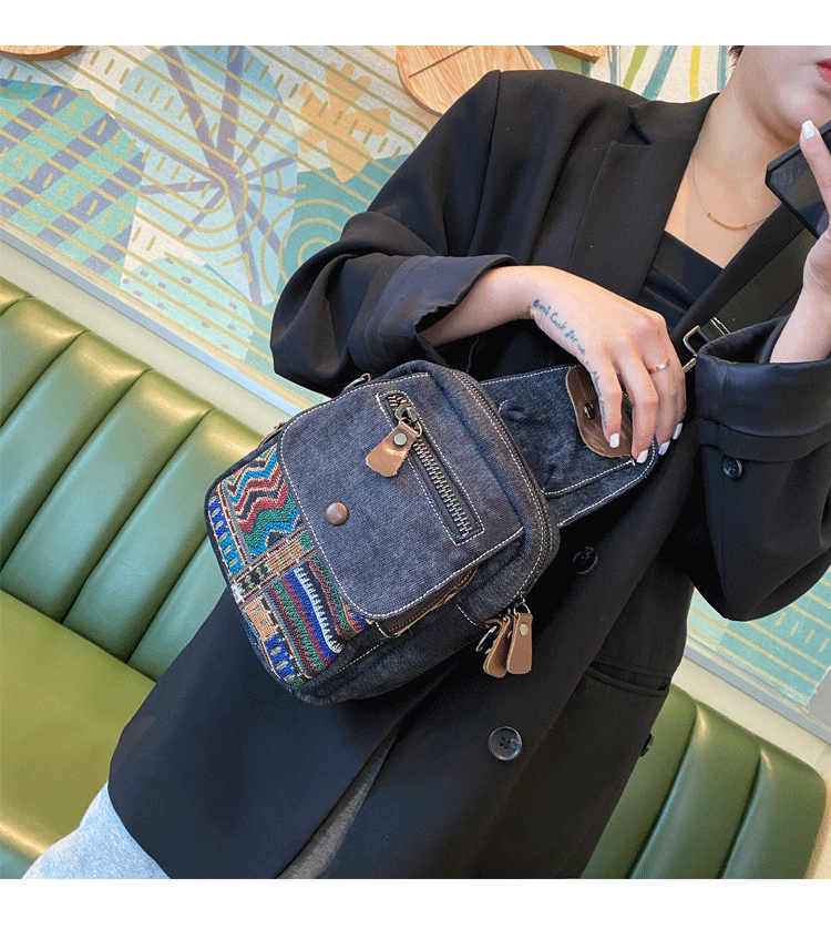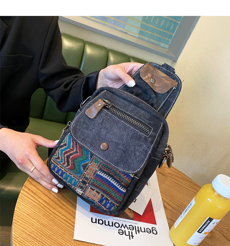 Design: Boho Canvas Sling Bag Crossbody Backpack Canvas Boho Embroidery Shoulder Bag Crossbody Bag