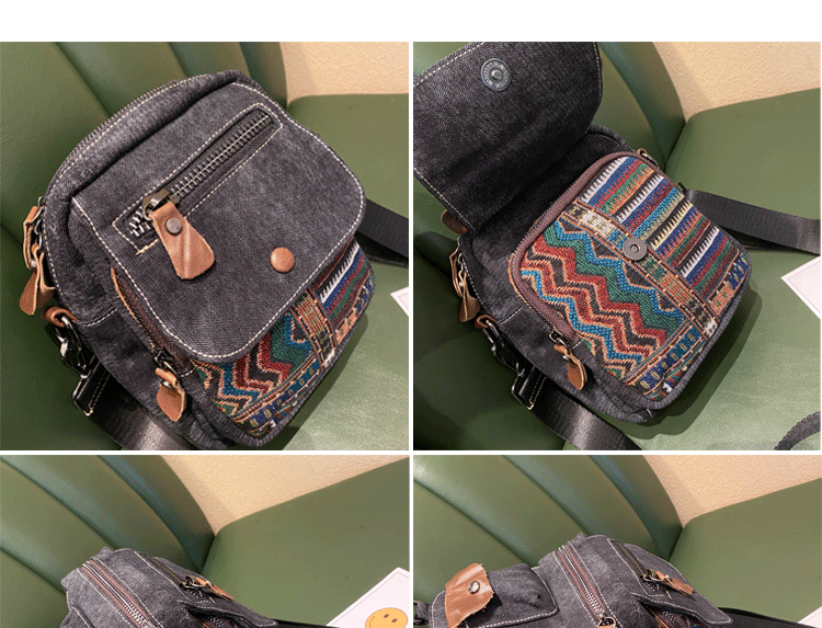 Style: Boho Canvas Sling Bag Crossbody Backpack Canvas Boho Embroidery Shoulder Bag Crossbody Bag
