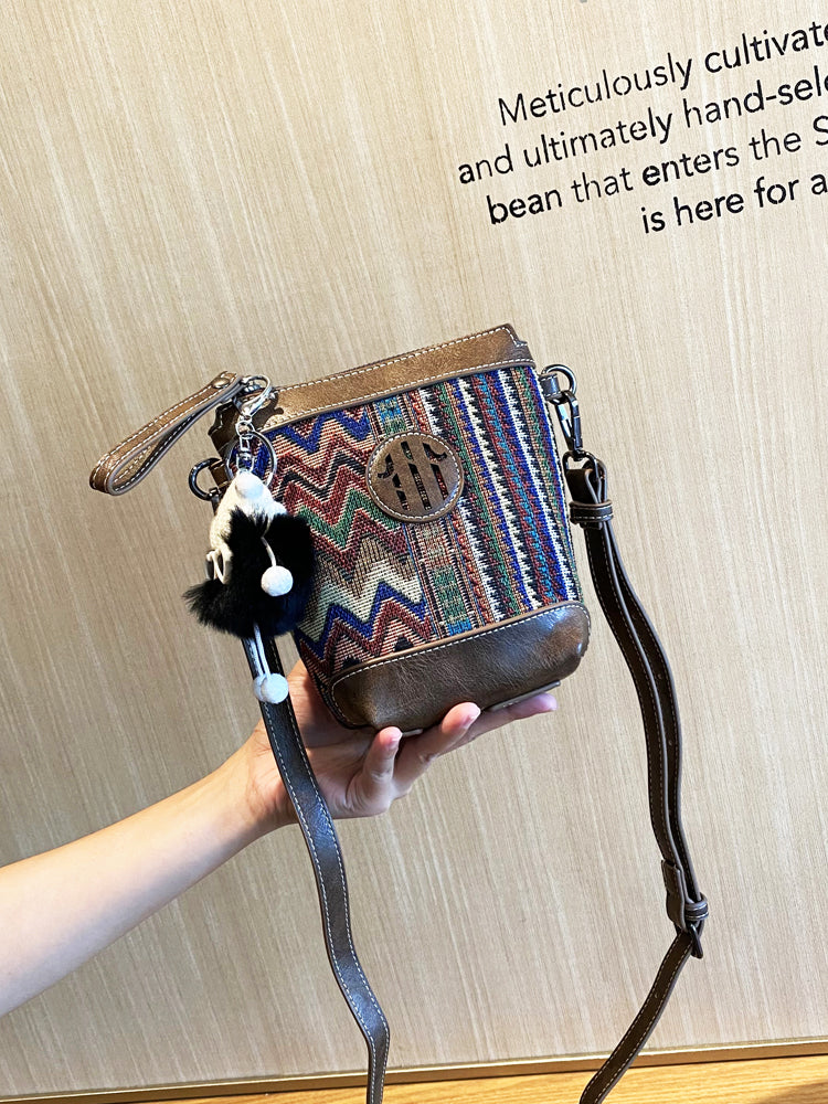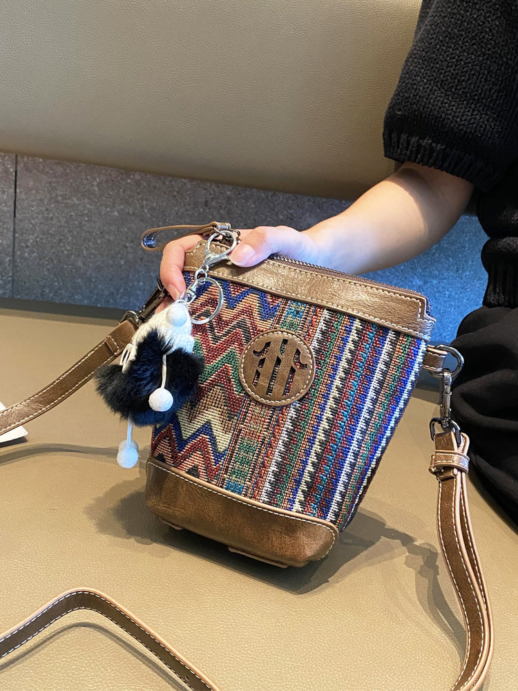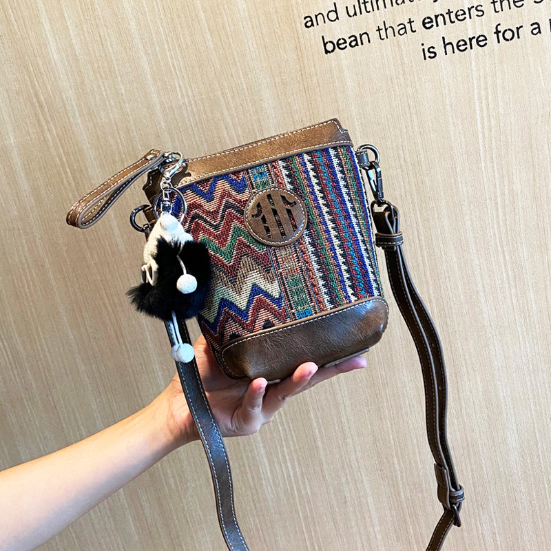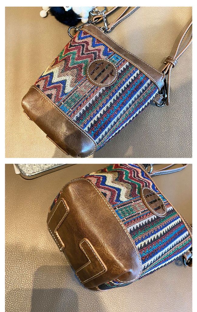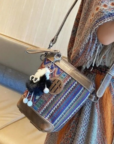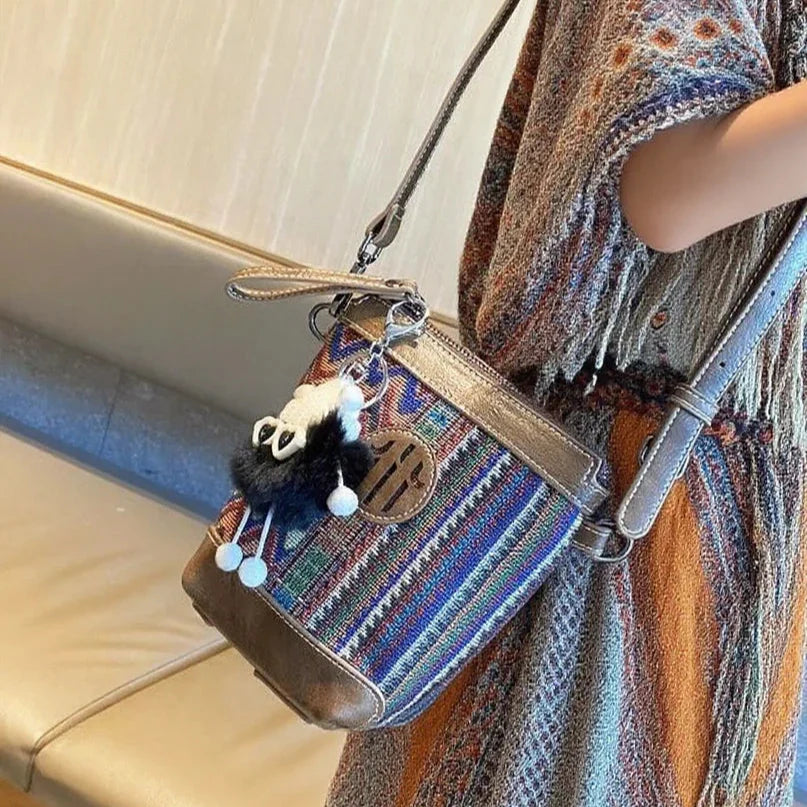 Design: Embroidery Canvas Small Boho Crossbody Bag Boho Canvas Small Bucket Shoulder Bag