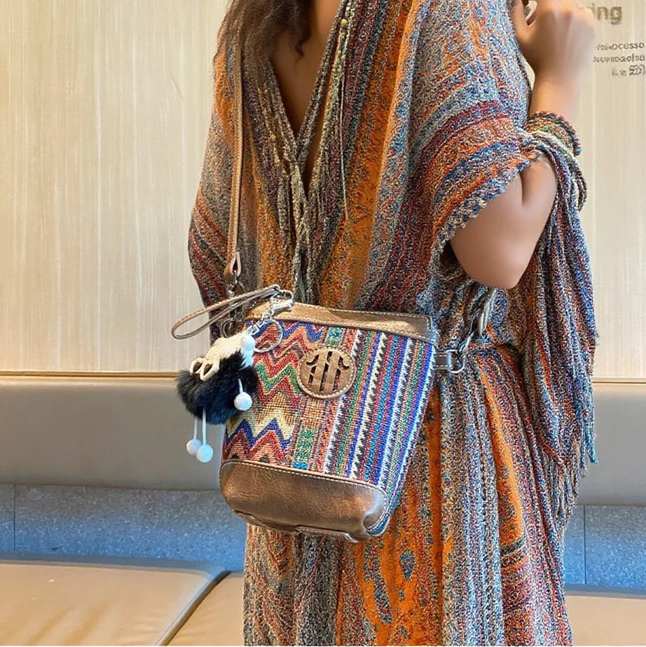 Style: Embroidery Canvas Small Boho Crossbody Bag Boho Canvas Small Bucket Shoulder Bag