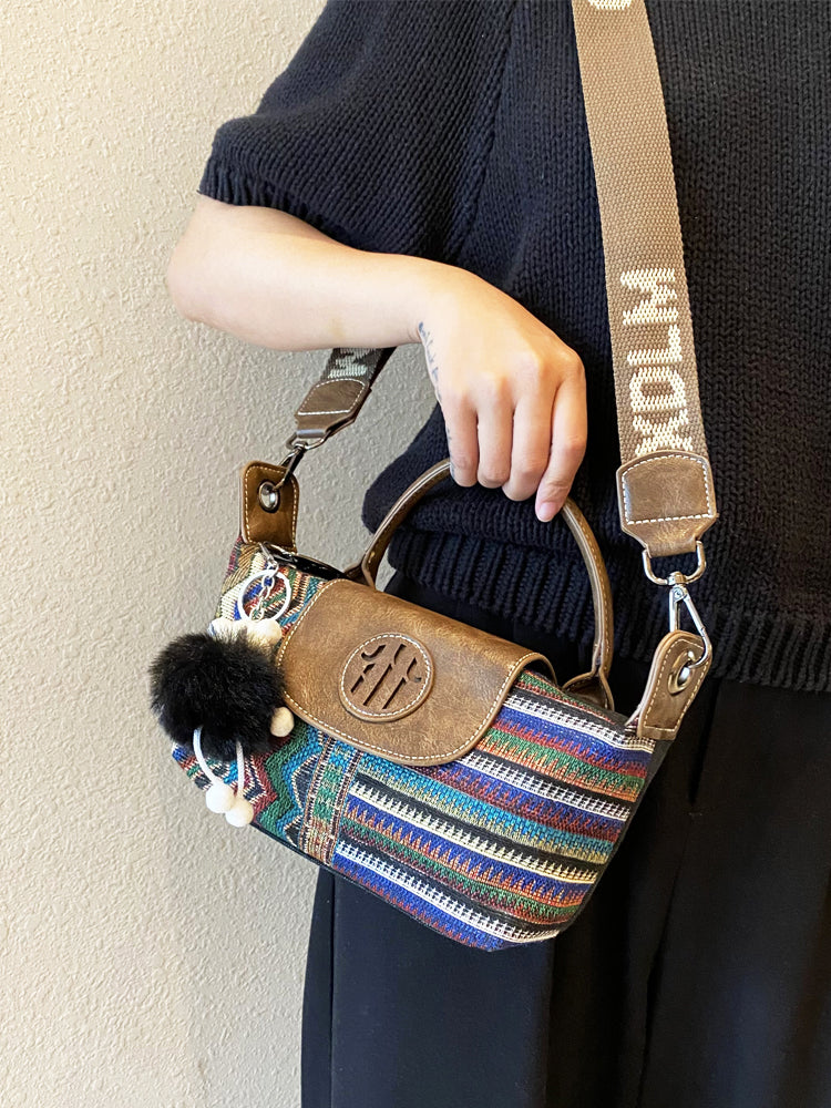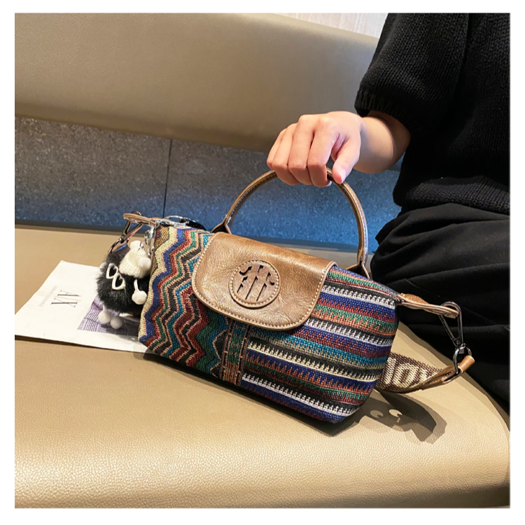 Design: Canvas Small Boho Crossbody Bag Boho Canvas Small Handbag Embroidery Shoulder Bag