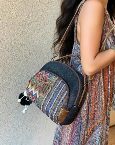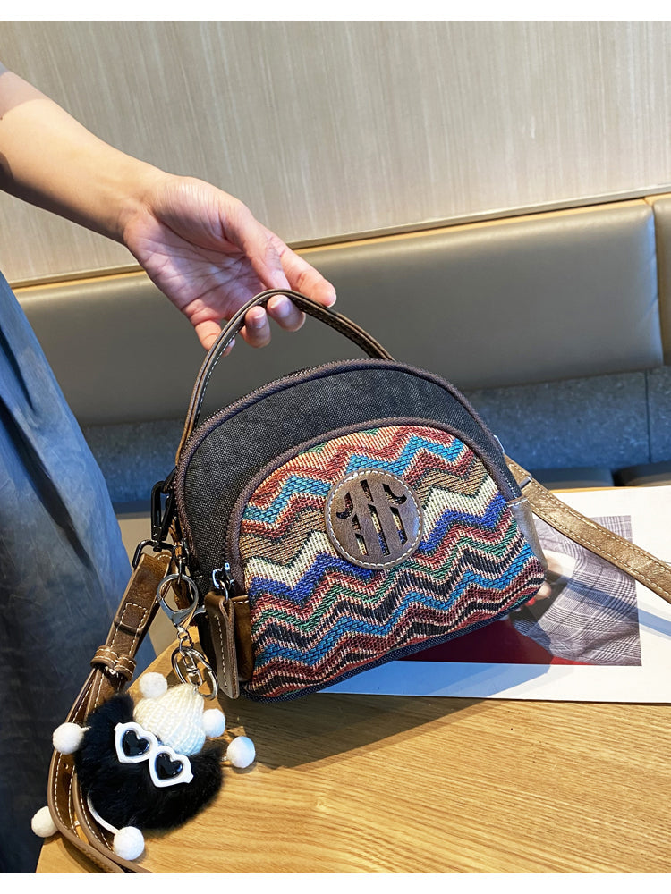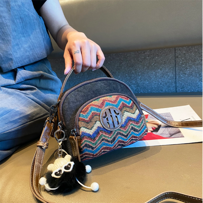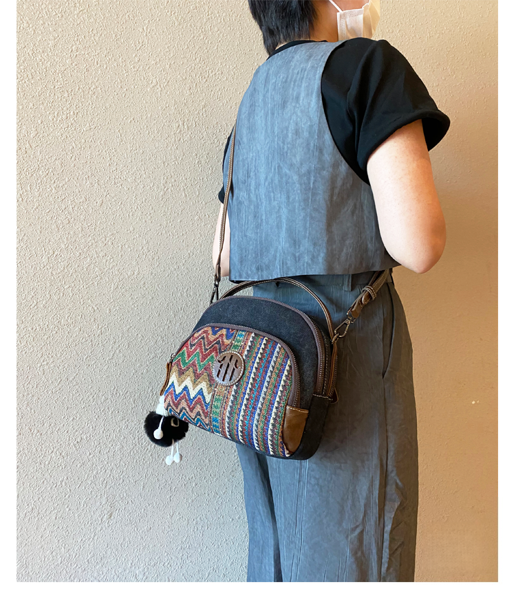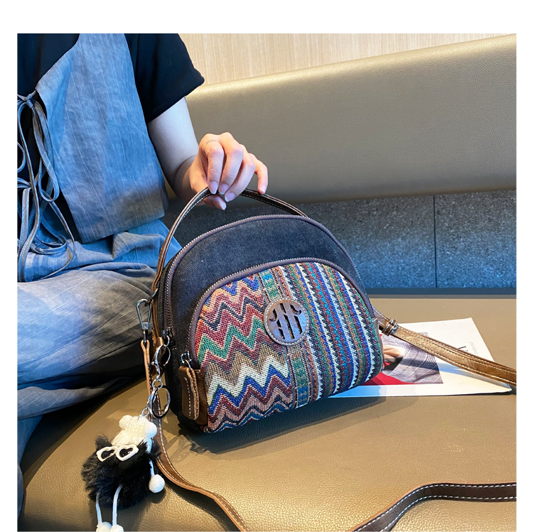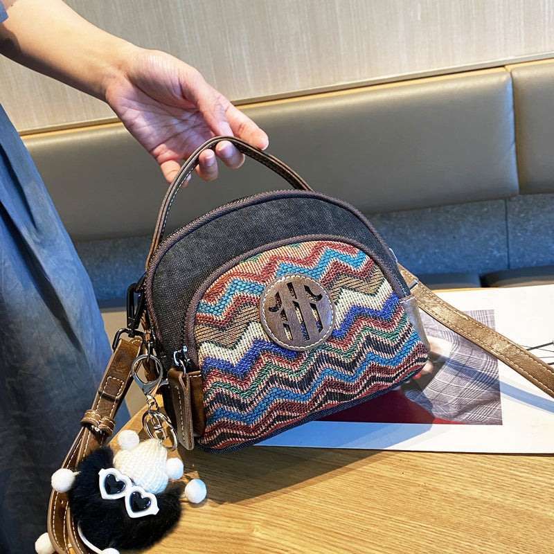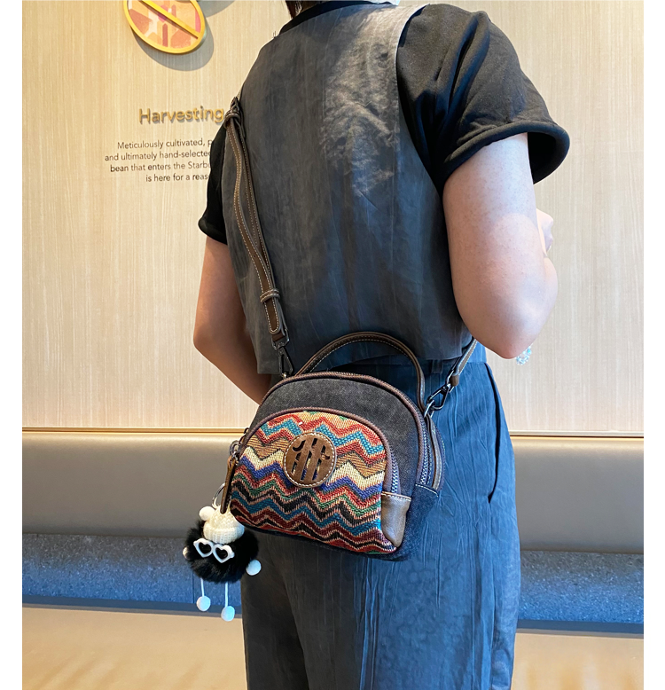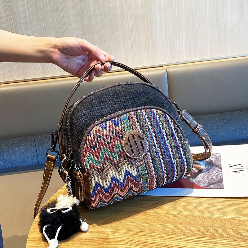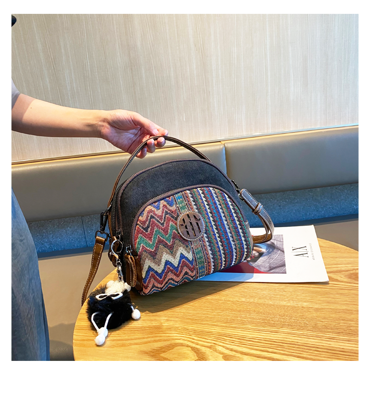 Design: Boho Canvas Small Round Handbag Shoulder Bag Embroidery Canvas Small Boho Crossbody Bag