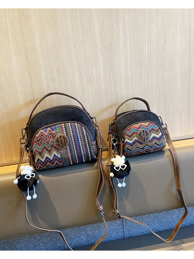 Style: Boho Canvas Small Round Handbag Shoulder Bag Embroidery Canvas Small Boho Crossbody Bag