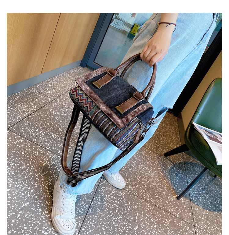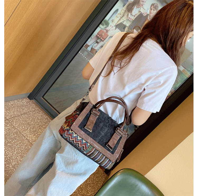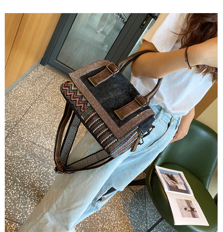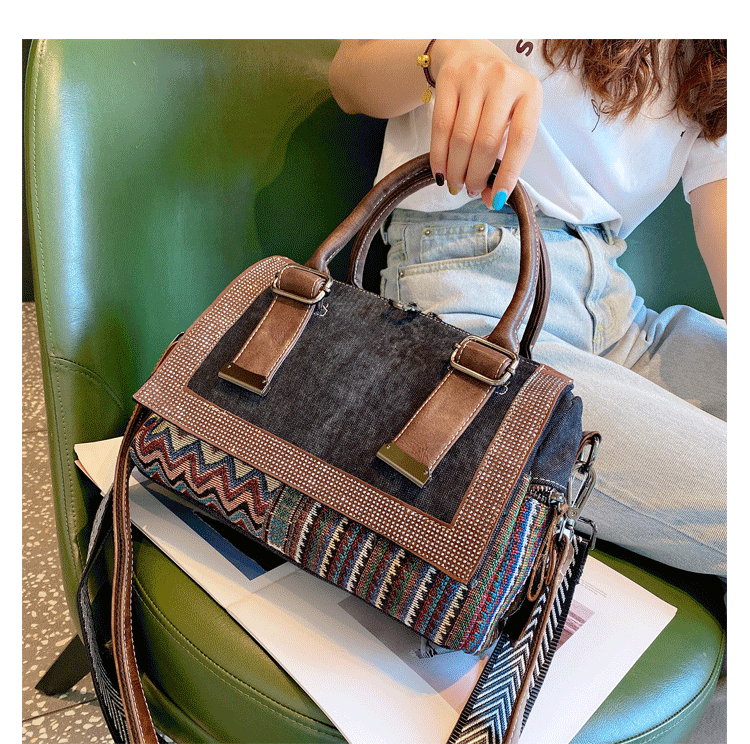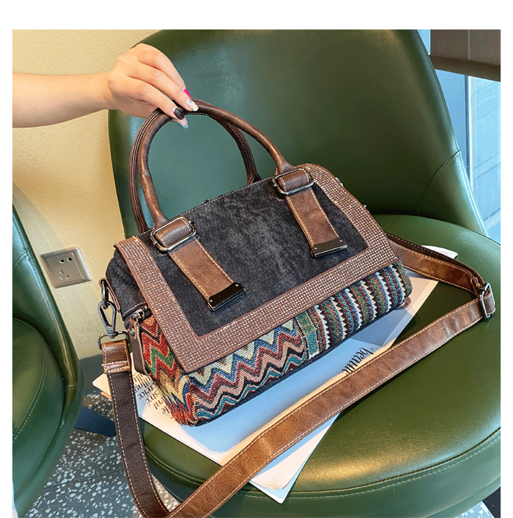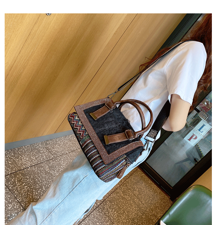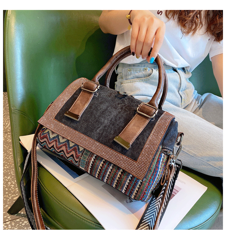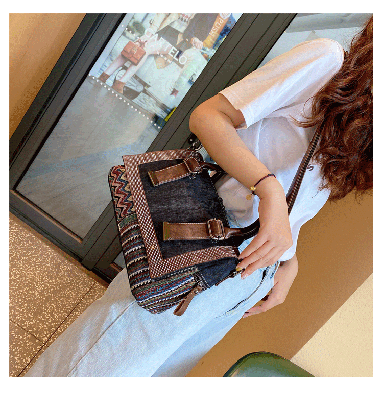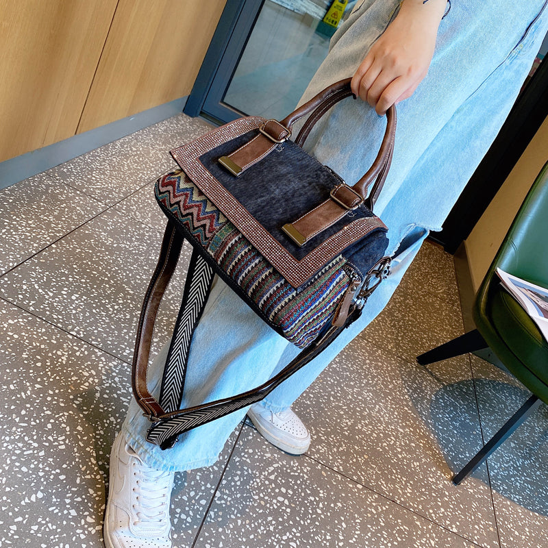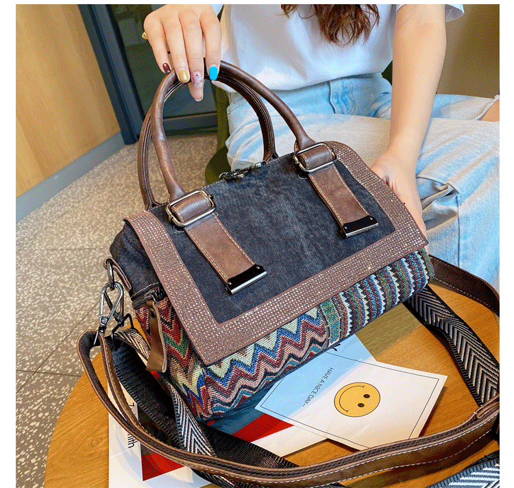 Style: Boho Handbag Boho Crossbody Bag Black Gray Canvas Ladies Handbags Canvas Boho Shoulder Bag