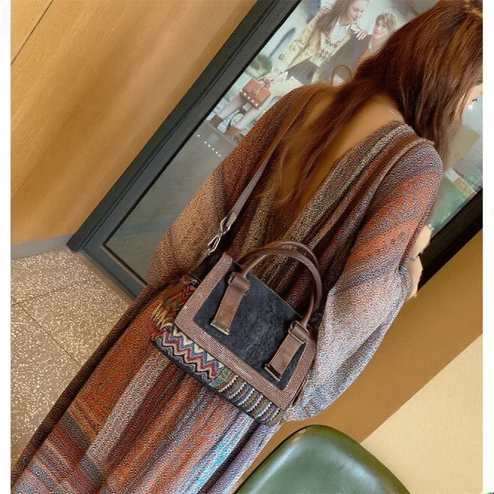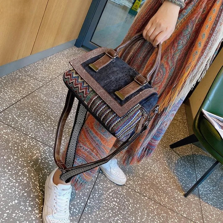Design: Boho Handbag Boho Crossbody Bag Black Gray Canvas Ladies Handbags Canvas Boho Shoulder Bag