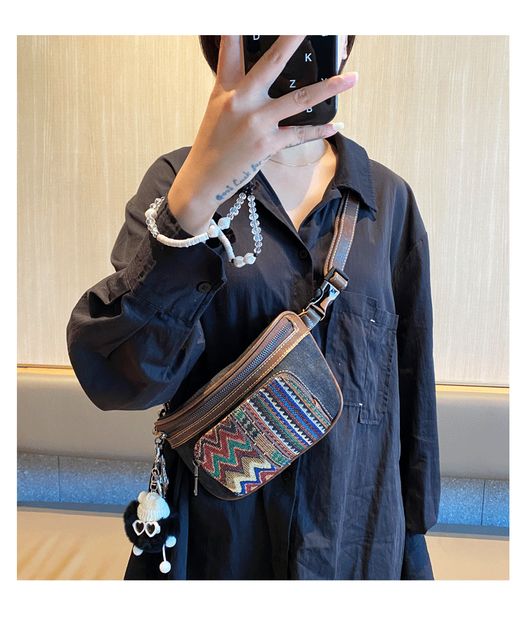 Style: Boho Sling Bag Boho Crossbody Bag Embroidery Canvas Small Waist Bag Boho Shoulder Bag