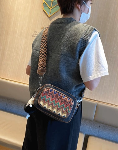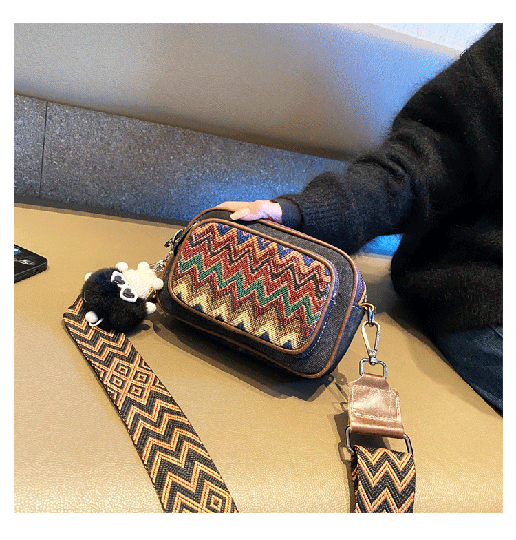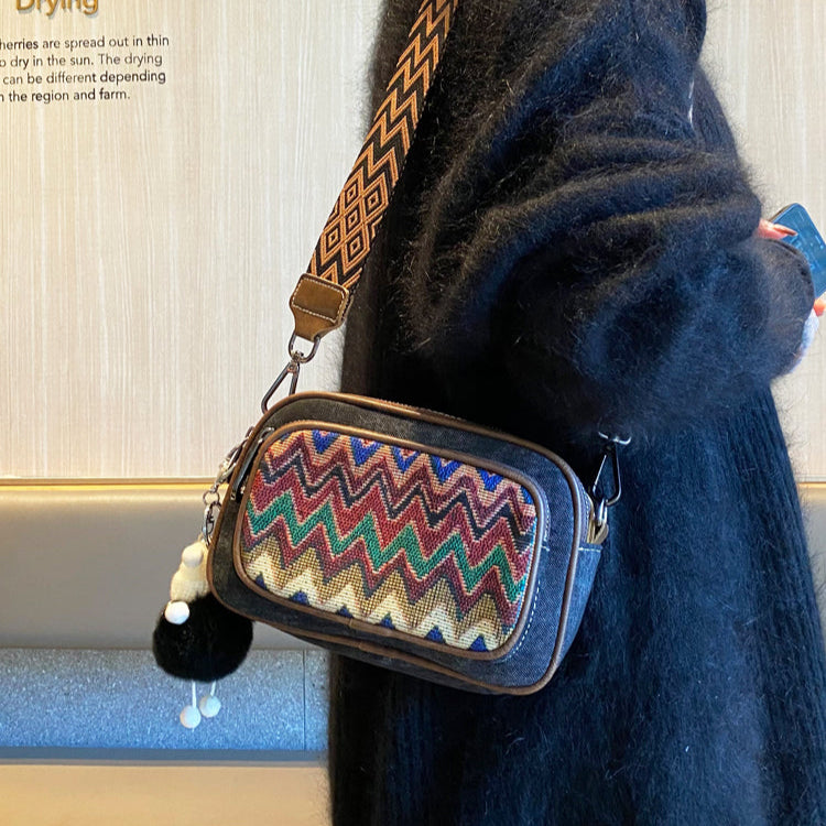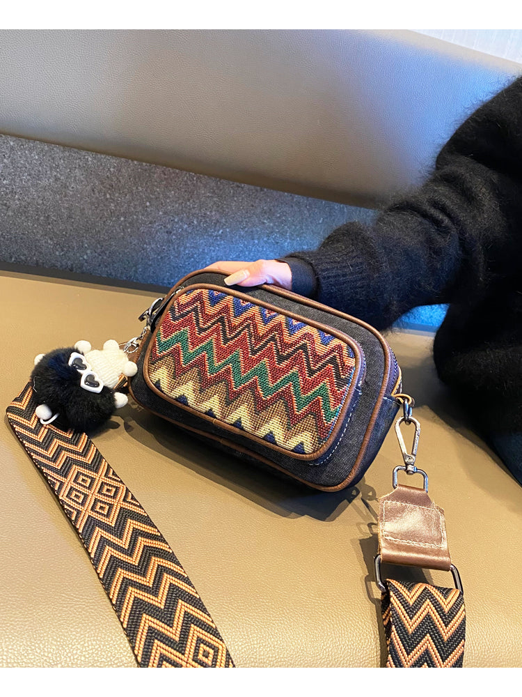 Design: Boho Embroidery Canvas Small Crossbody Bag Bohemian Canvas Small Shoulder Bag