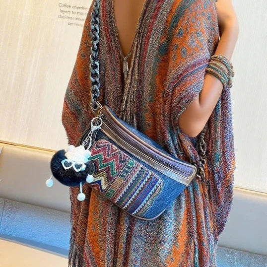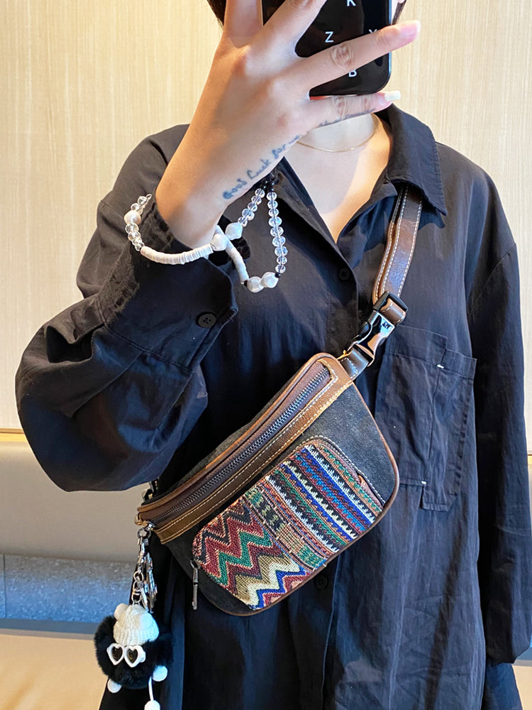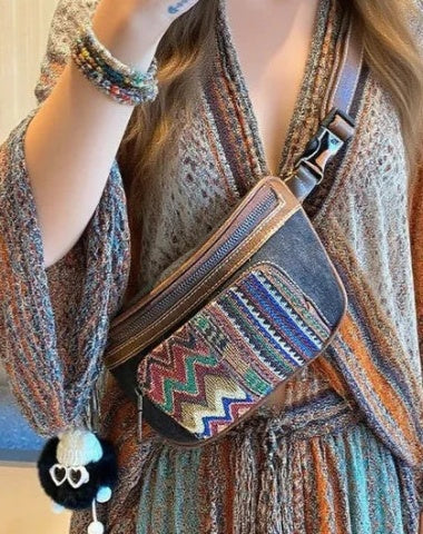 Style: Boho Sling Bag Boho Crossbody Bag Embroidery Canvas Small Waist Bag Boho Shoulder Bag