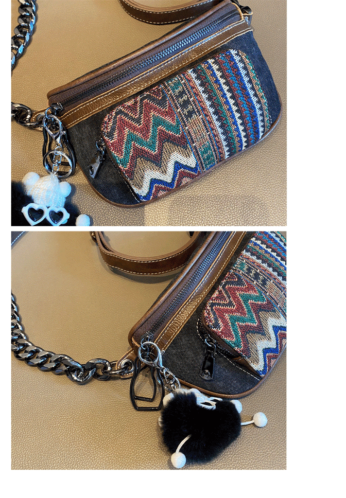 Design: Boho Sling Bag Boho Crossbody Bag Embroidery Canvas Small Waist Bag Boho Shoulder Bag