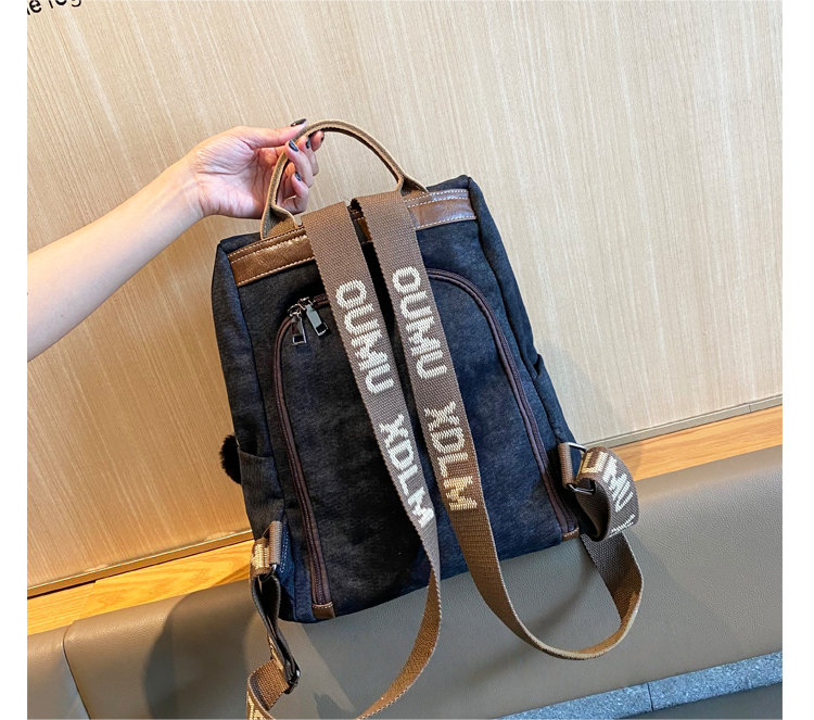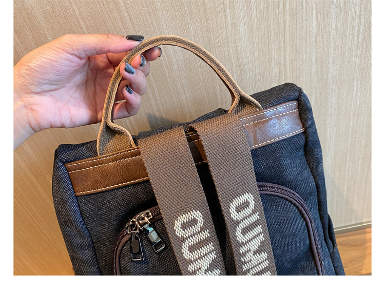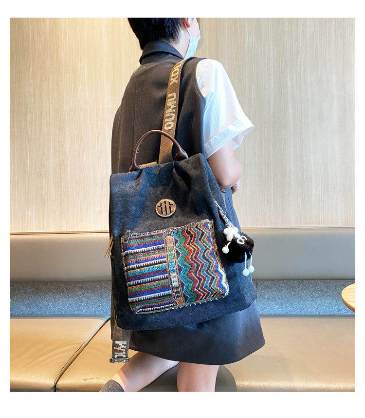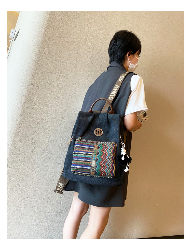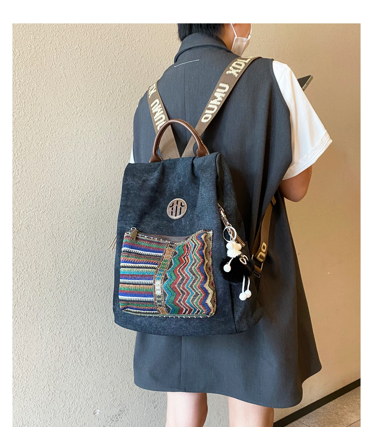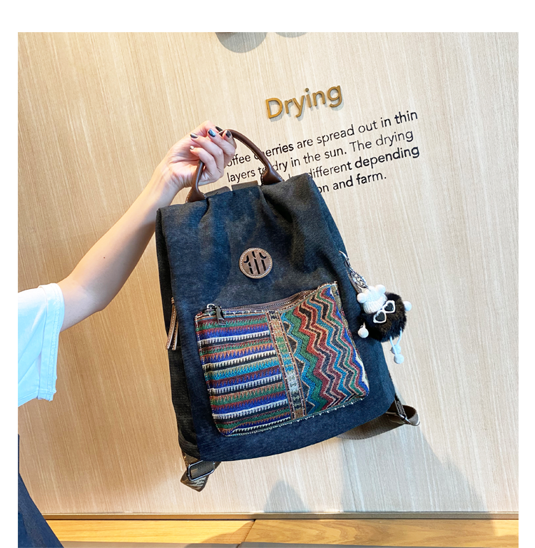 Design: Boho Style Backpack Womens Canvas Backpack Vintage Black Gray Embroidery Boho Backpack