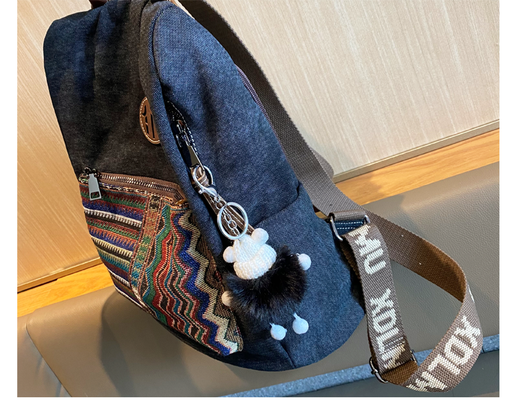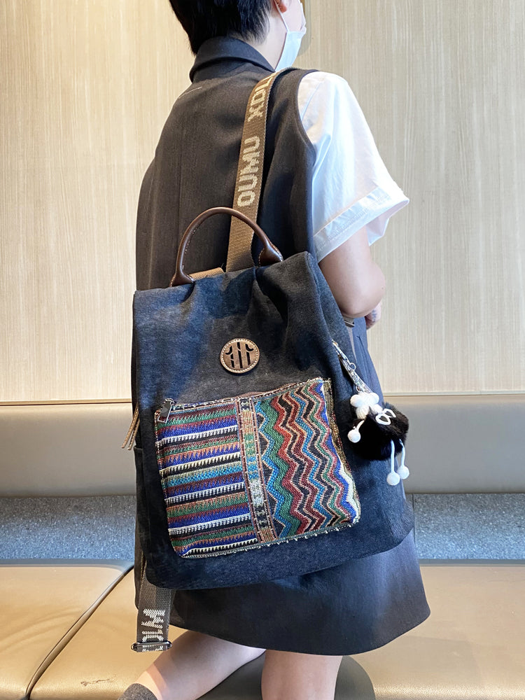 Style: Boho Style Backpack Womens Vintage Black Gray Embroidery Canvas Backpack Boho Backpack