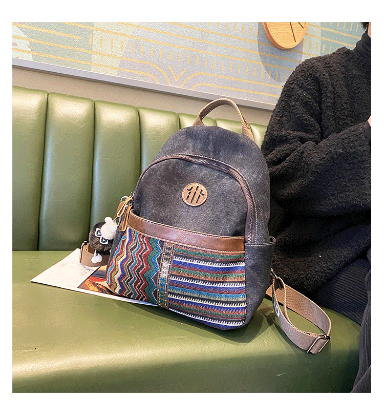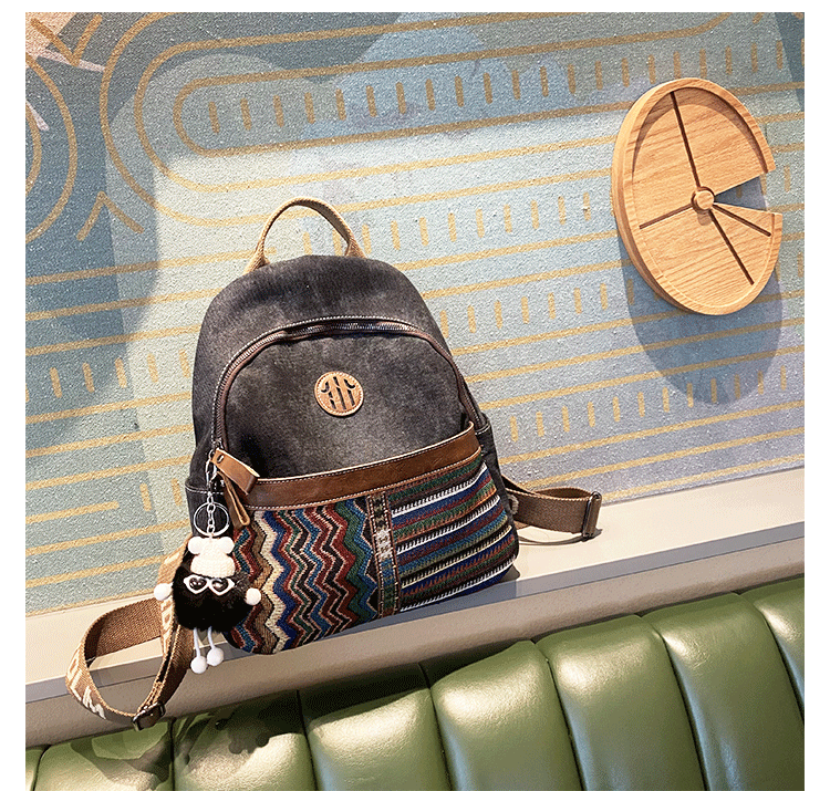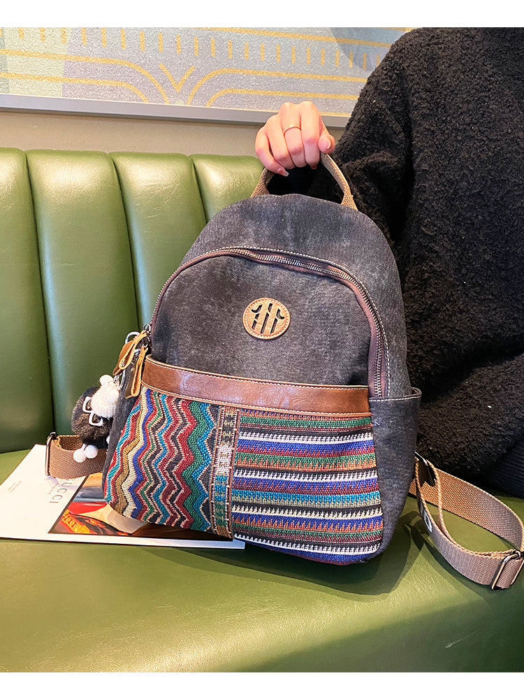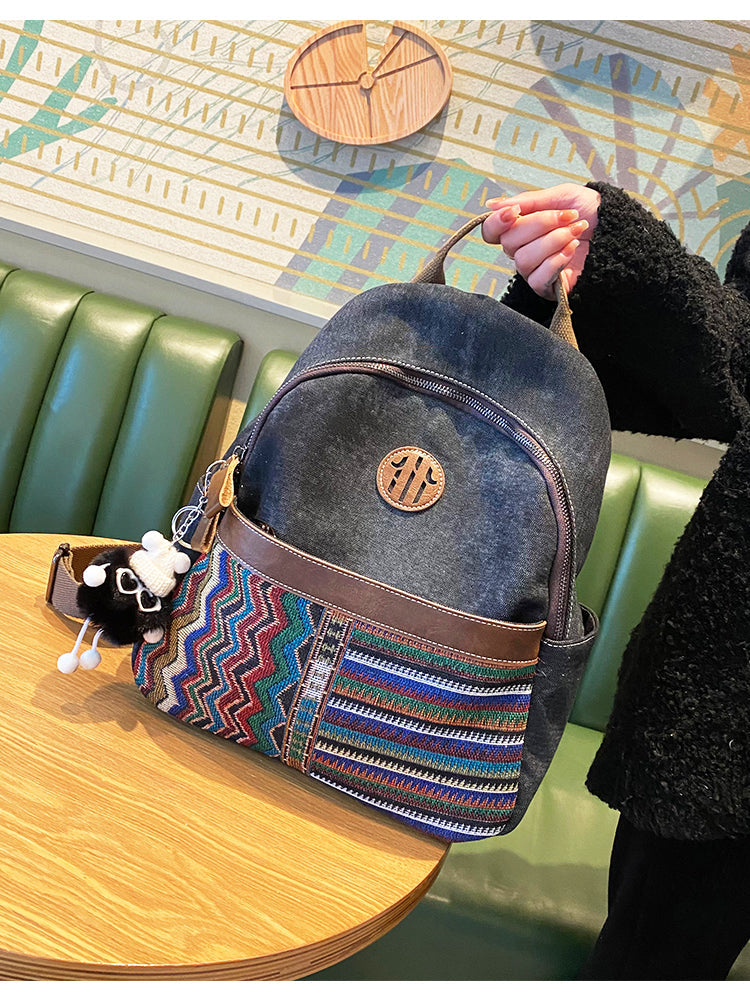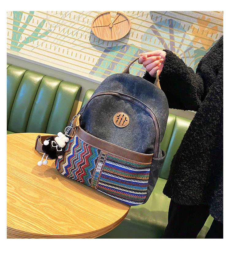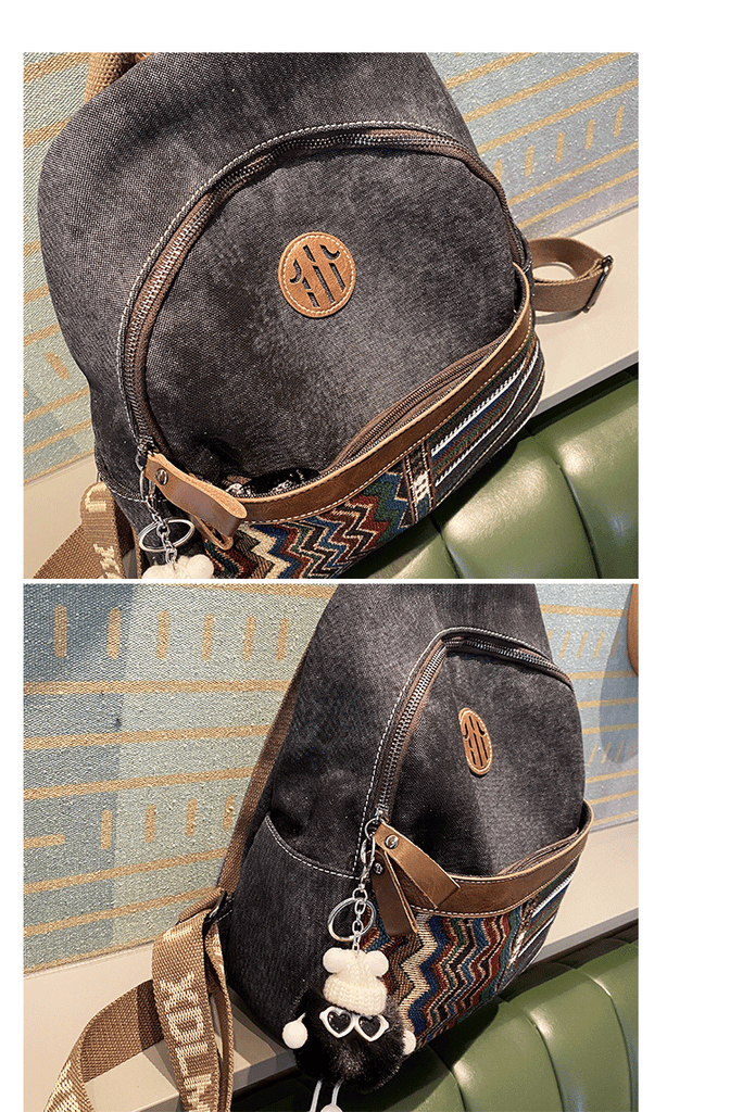 Design: Boho Style Backpack Womens Vintage Black Gray Embroidery Canvas Backpack Boho Backpack