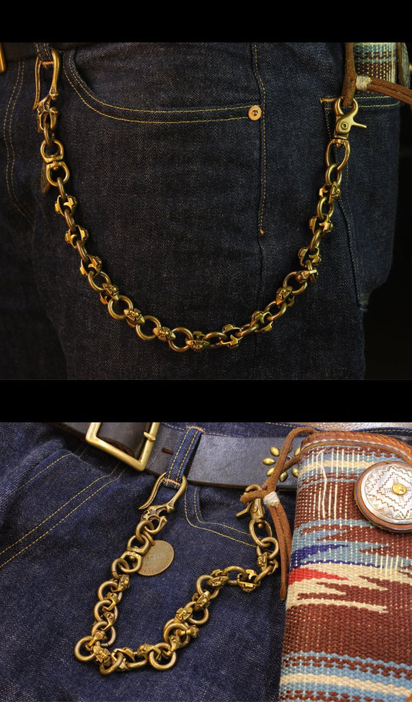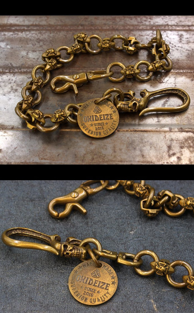 Style: Badass Skull Brass Biker Wallet Chain 1%er Wallet chain gold pants chain For Men