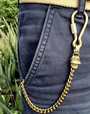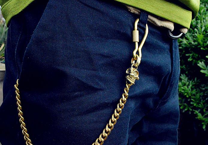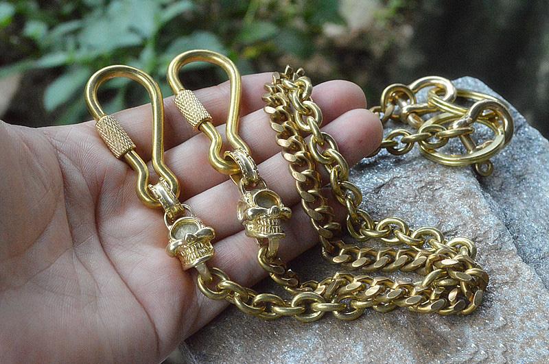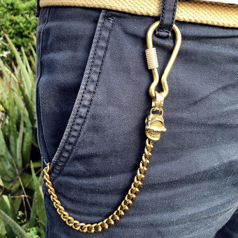 Style: Badass Brass Copper Skull Mens Pants Chain Biker Wallet Chain 18‘â€?jeans chain jean chain For Men