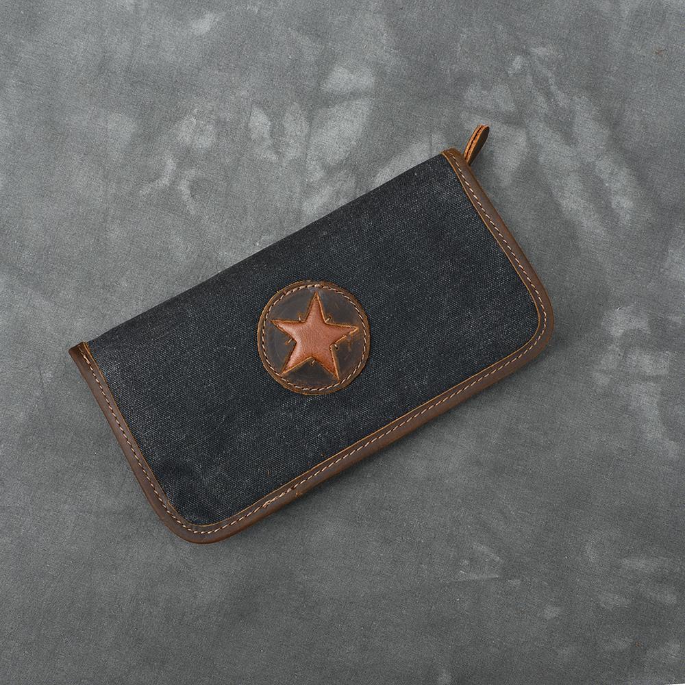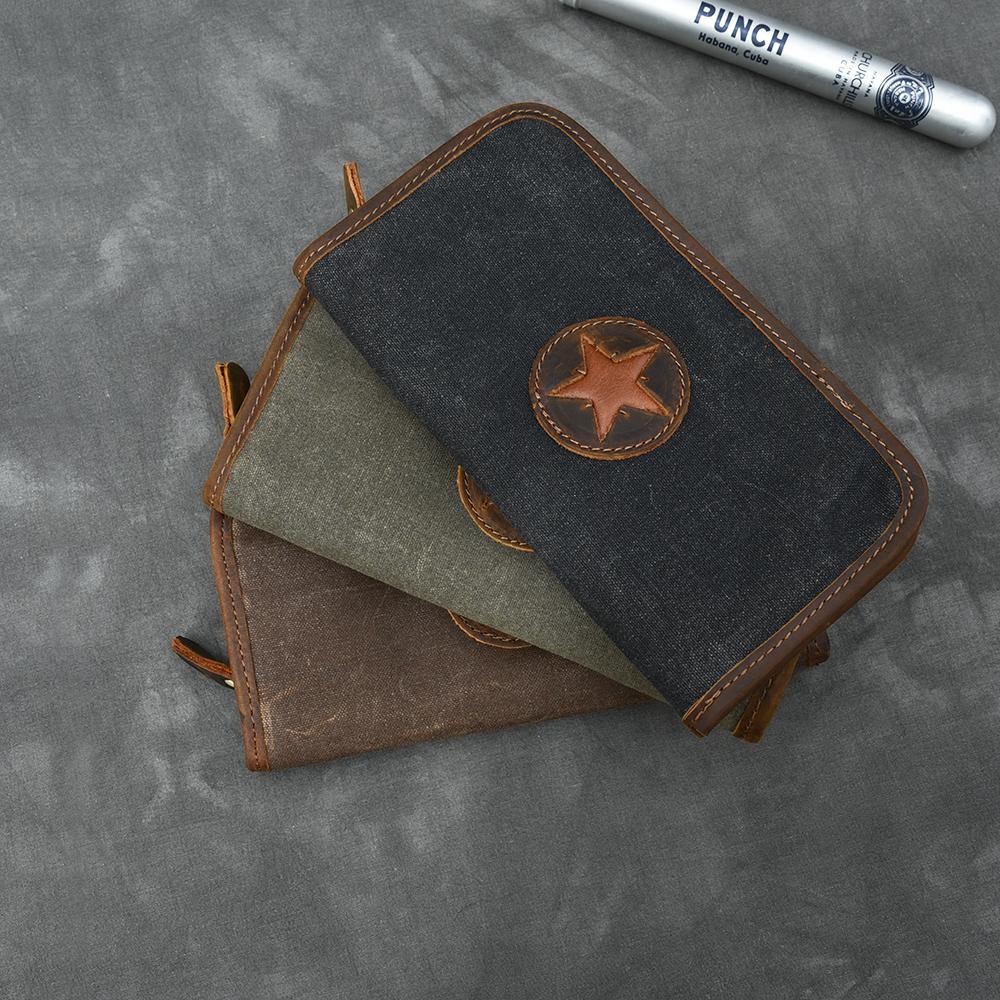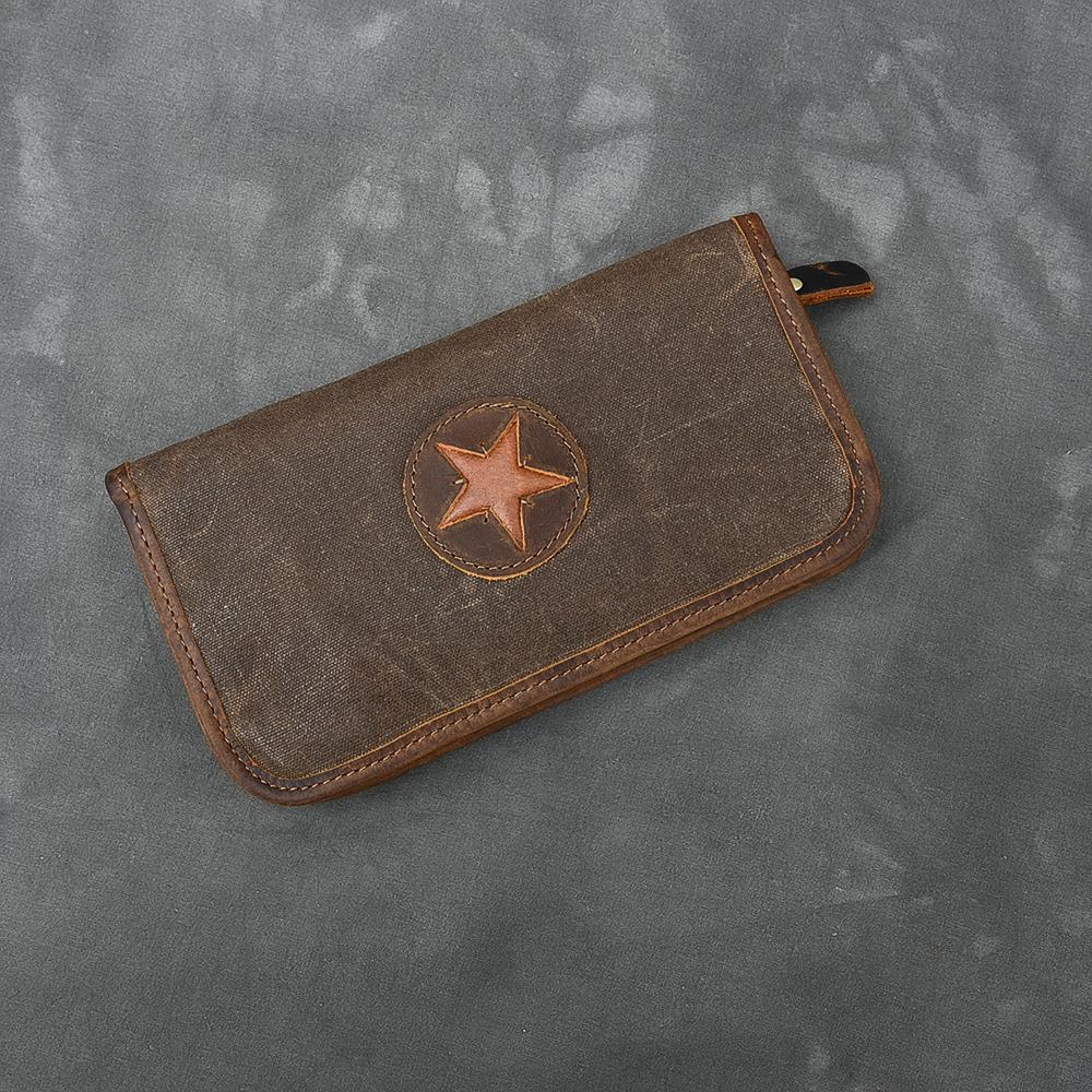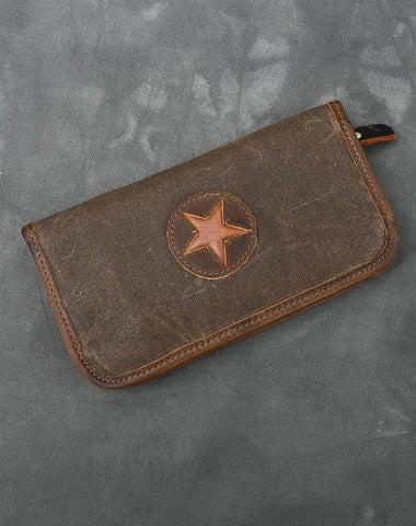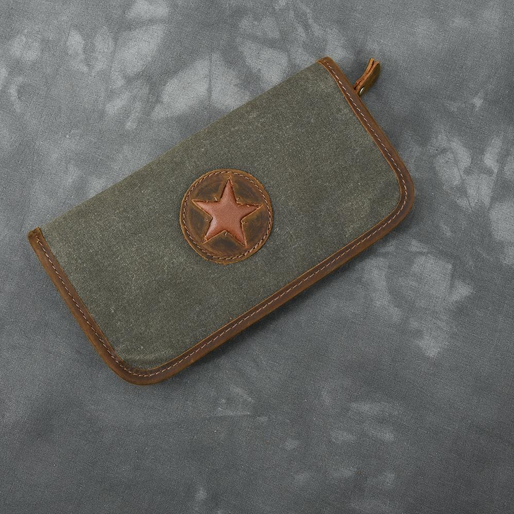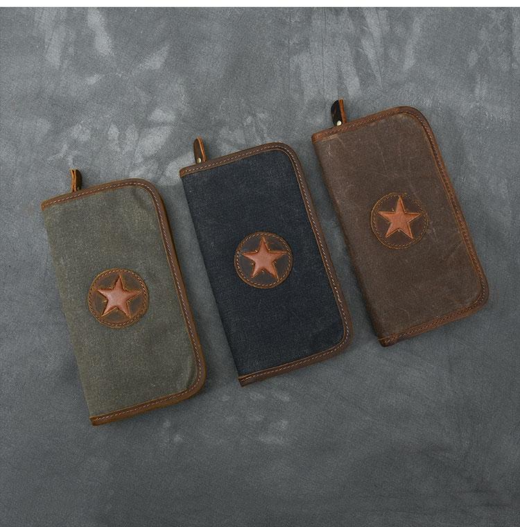 Style: Brown Canvas Leather Mens Long Wallet Army Green Large Clutch Phone Case For Men