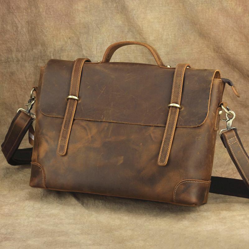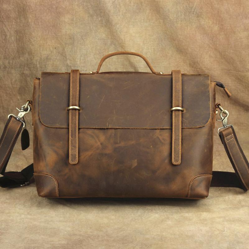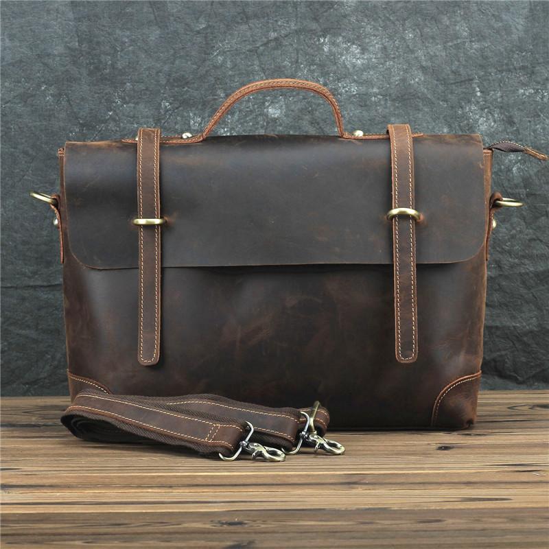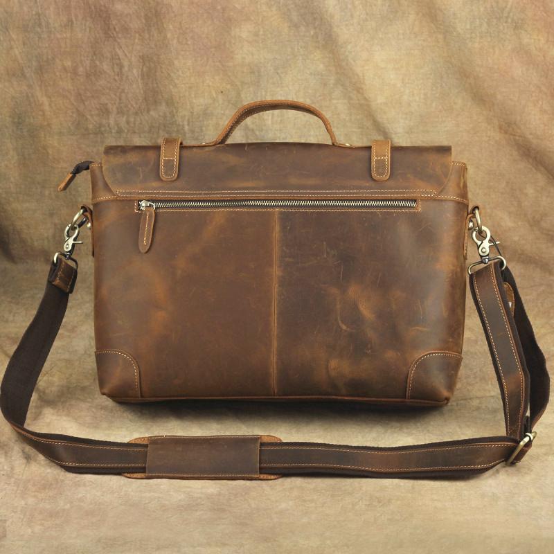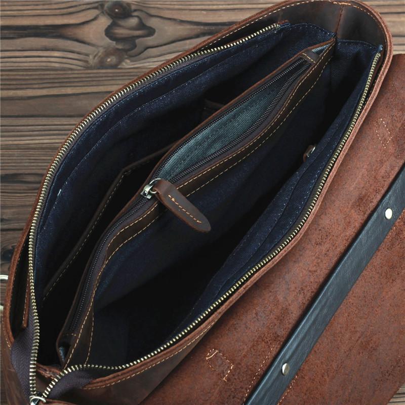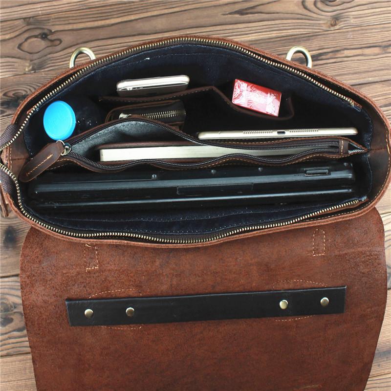 Design: Brown Canvas Leather Men's Professional Briefcase 14‘’ Laptop Handbag Business Bag For Men