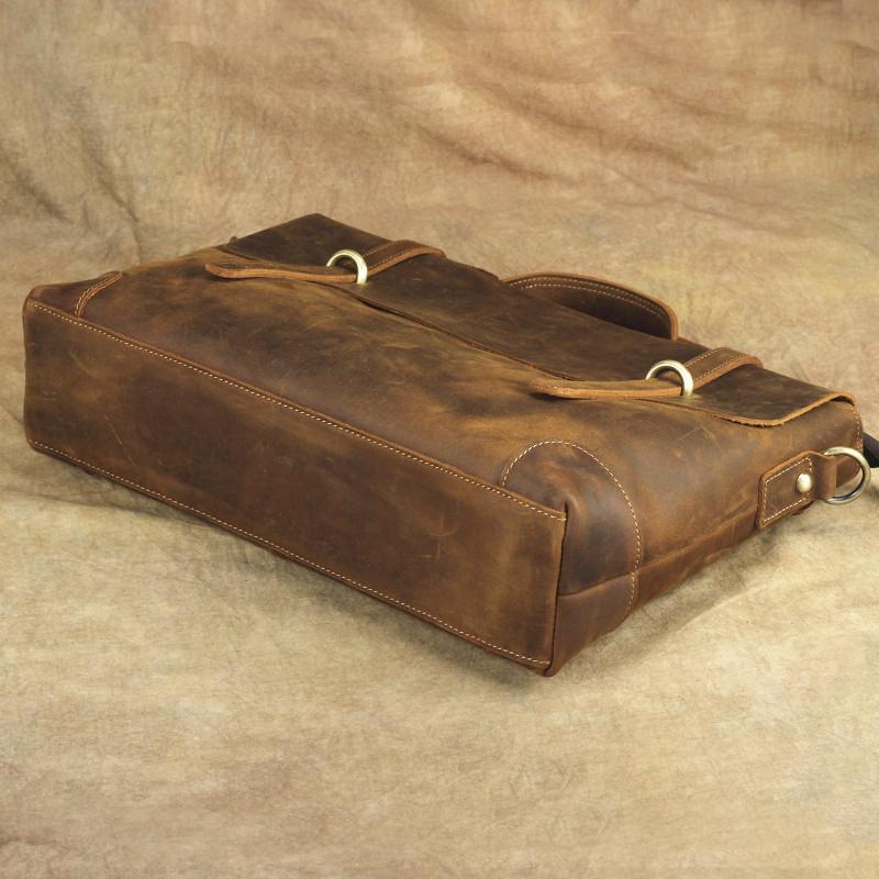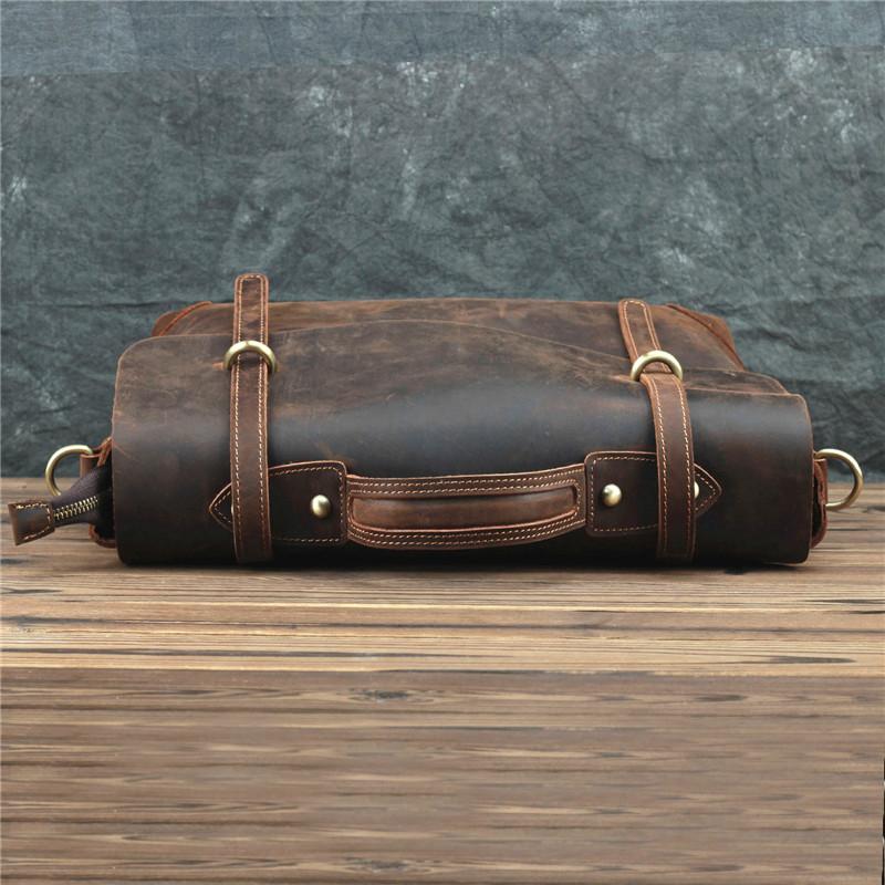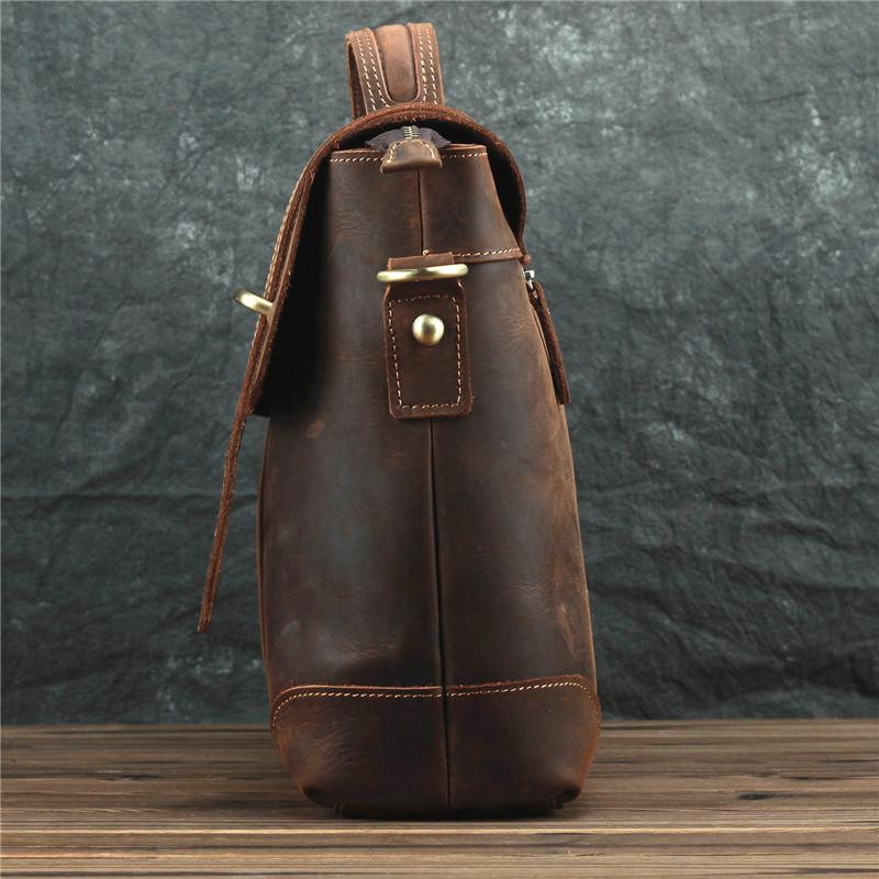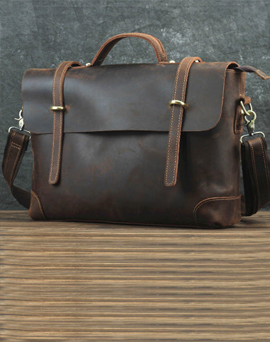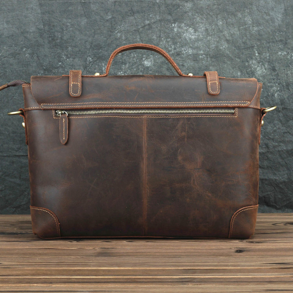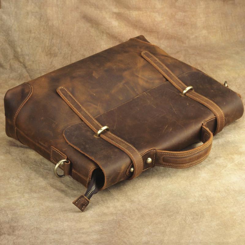 Design: Brown Canvas Leather Men's Professional Briefcase 14‘’ Laptop Handbag Business Bag For Men