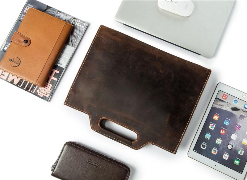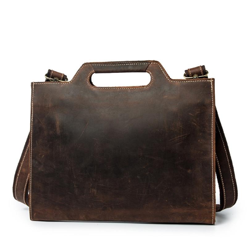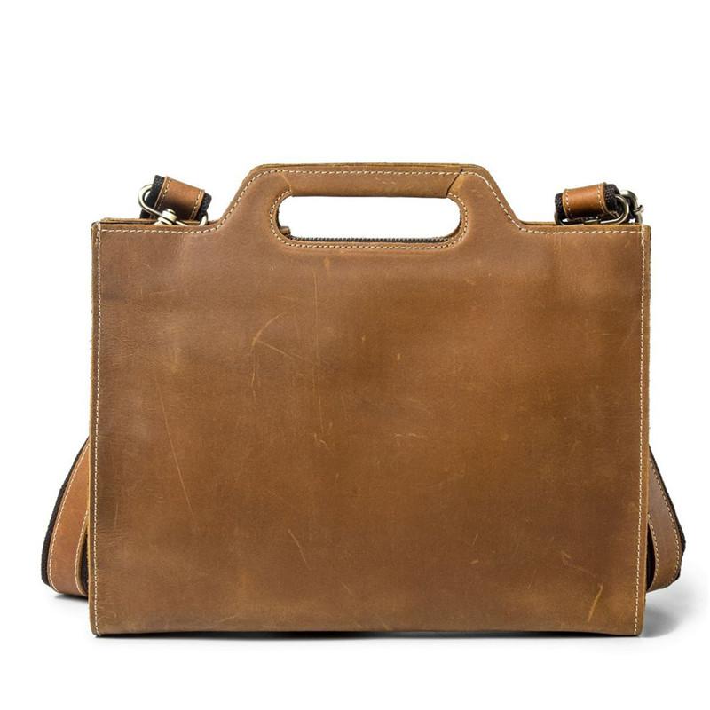 Design: Brown Leather Men's Simple Professional Briefcase 13‘’ Laptop Handbag Business Bag For Men