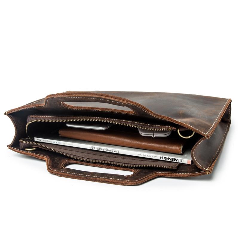 Design: Brown Leather Men's Simple Professional Briefcase 13‘’ Laptop Handbag Business Bag For MenOverview: