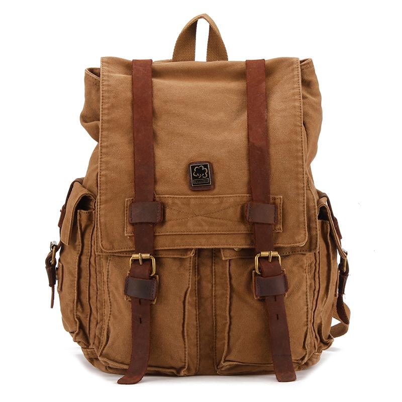 Design: Brown CANVAS Mens Fashion Khaki Travel Bag College Backpack Hiking Bag For Men