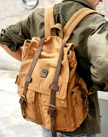 Style: Brown CANVAS Mens Fashion Khaki Travel Bag College Backpack Hiking Bag For Men