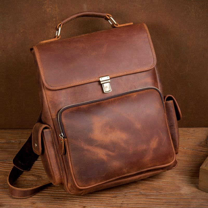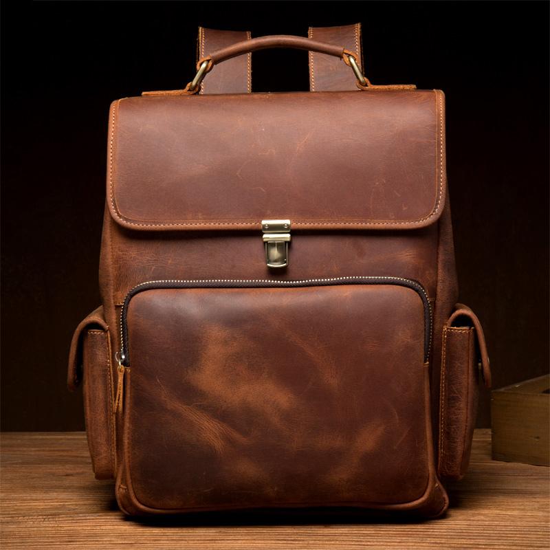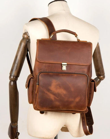 Design: Brown Casual Leather Mens 13 inches Travel Backpacks Computer Backpack for Men