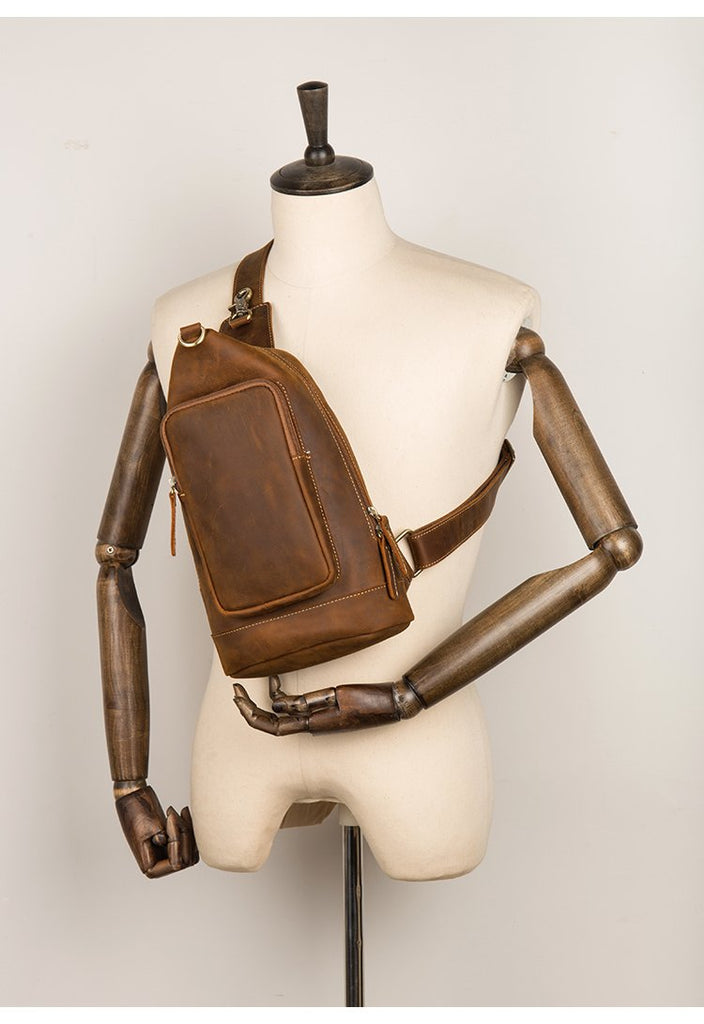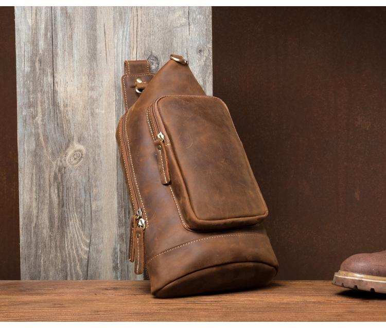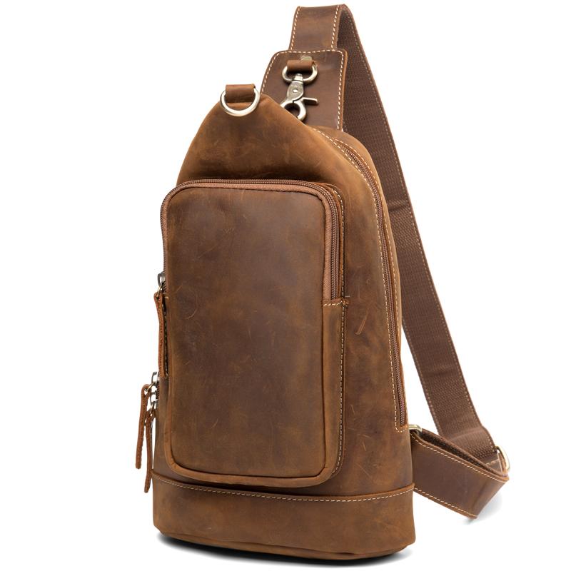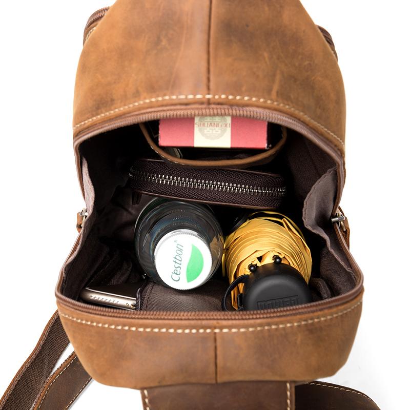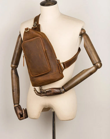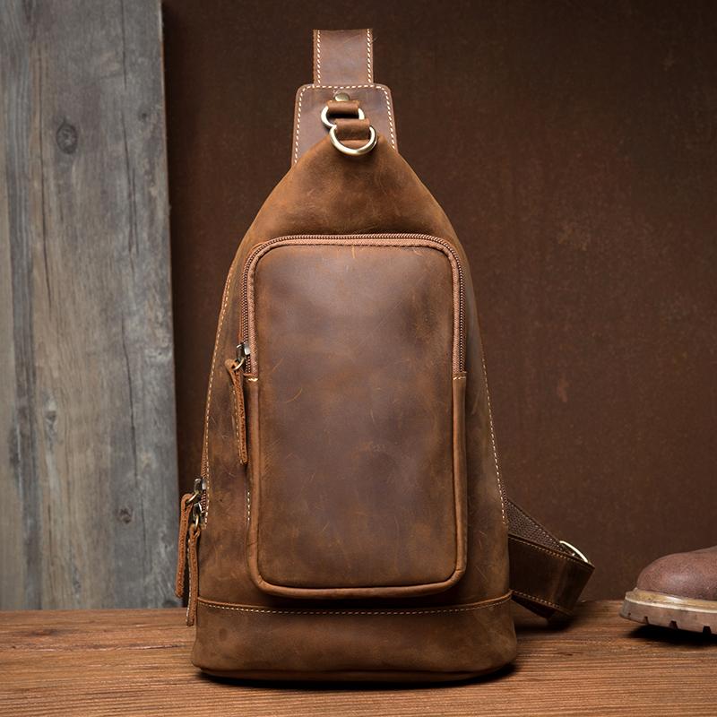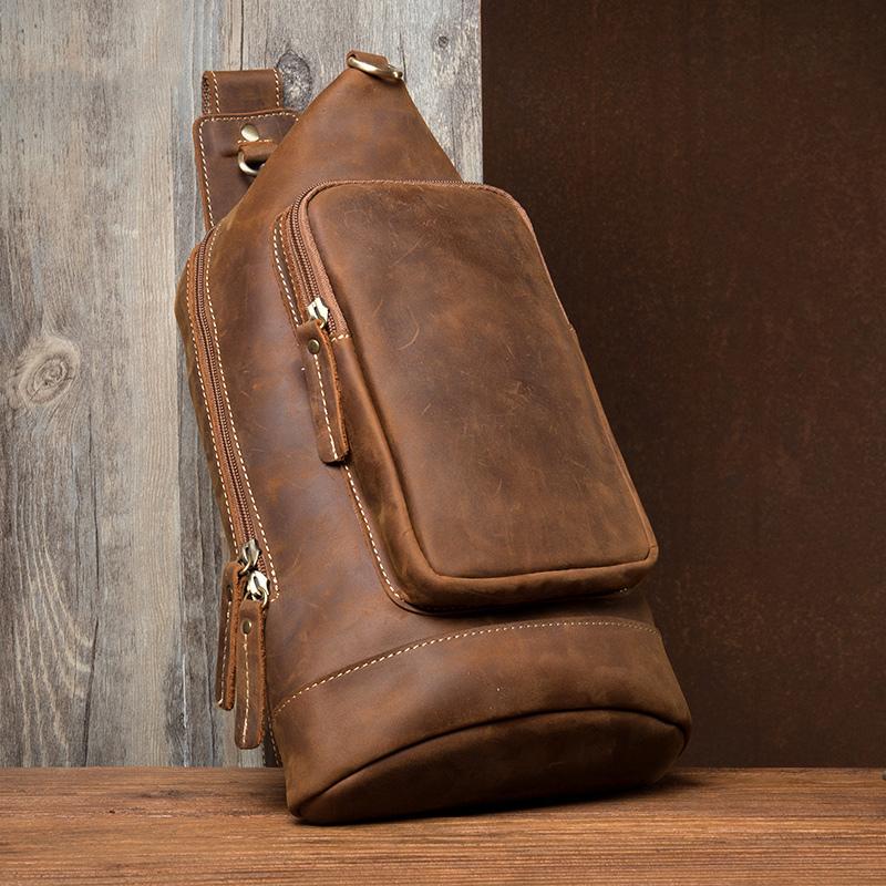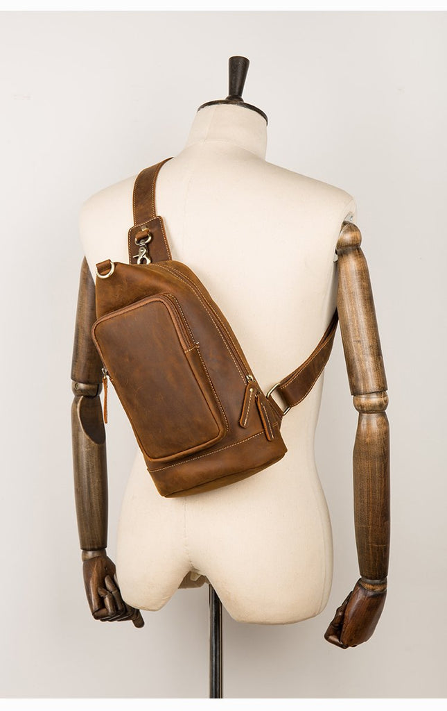 Design: Brown Casual Leather Mens 8 inches Sling Bags Chest Bags One Shoulder Backpack for Men