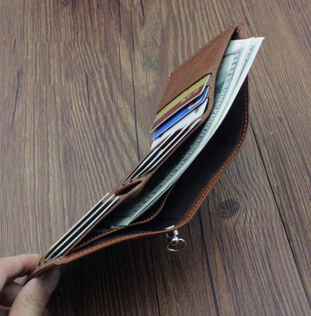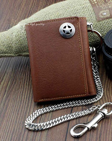 Design: BADASS BROWN LEATHER MENS TRIFOLD SMALL BIKER WALLET CHAIN WALLET WALLET WITH CHAIN FOR MEN