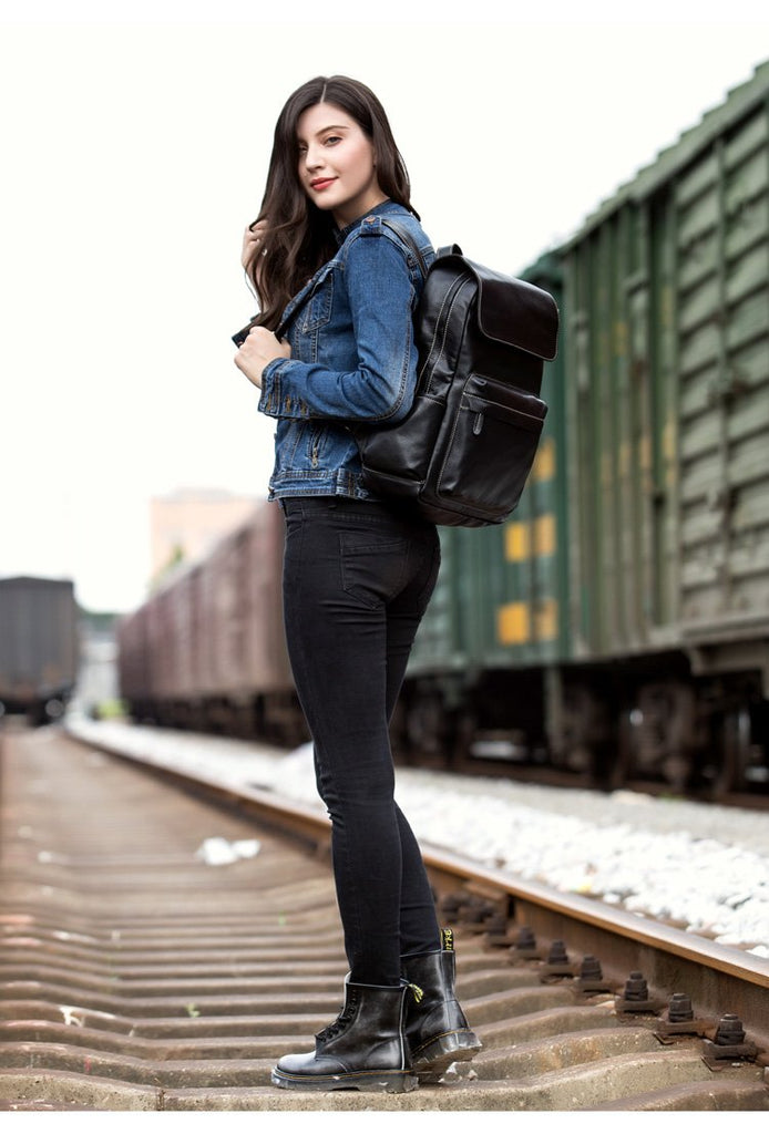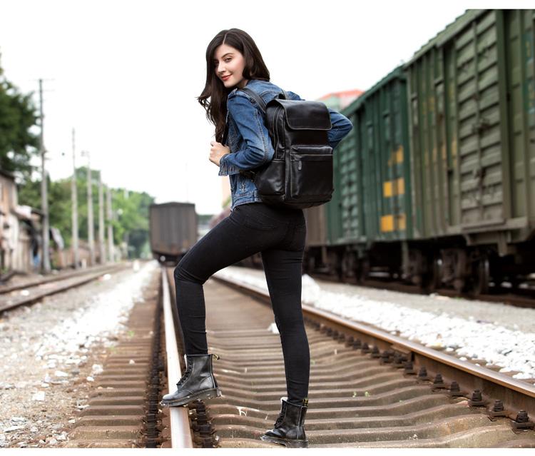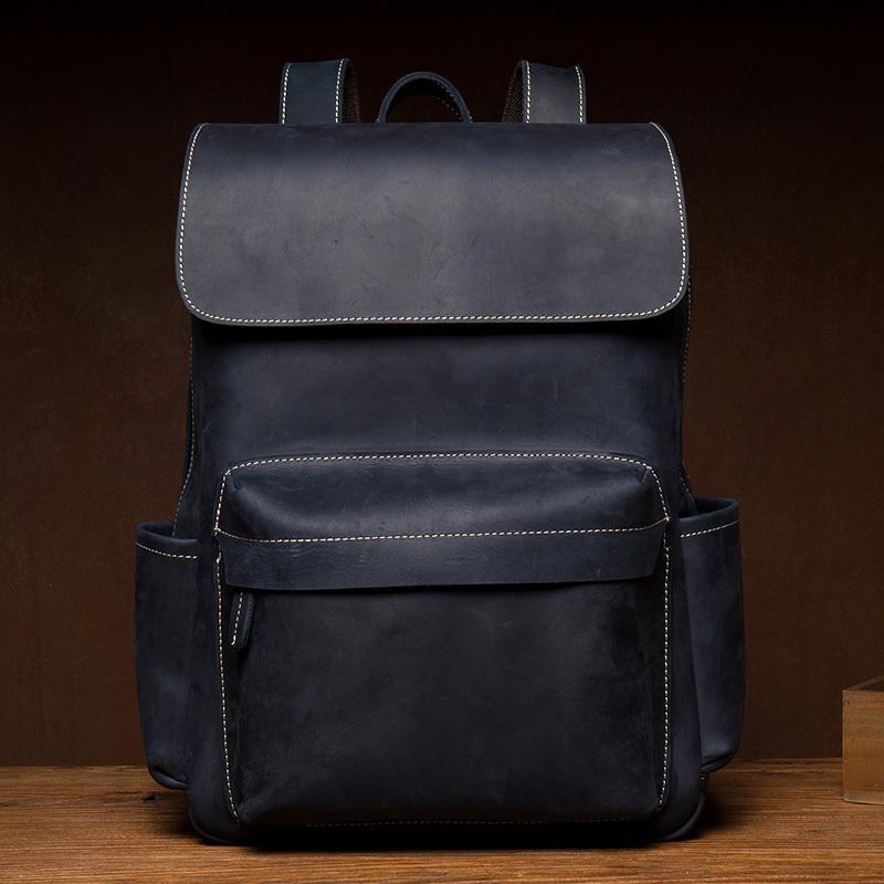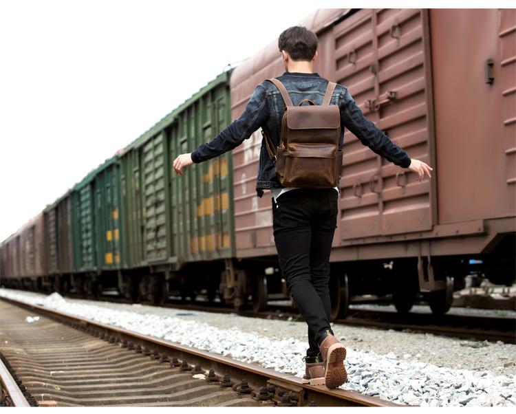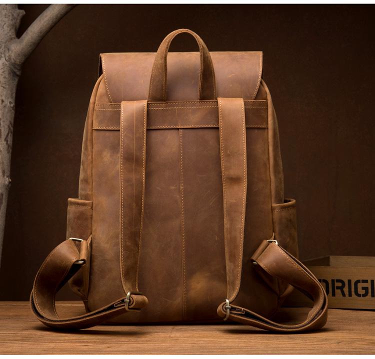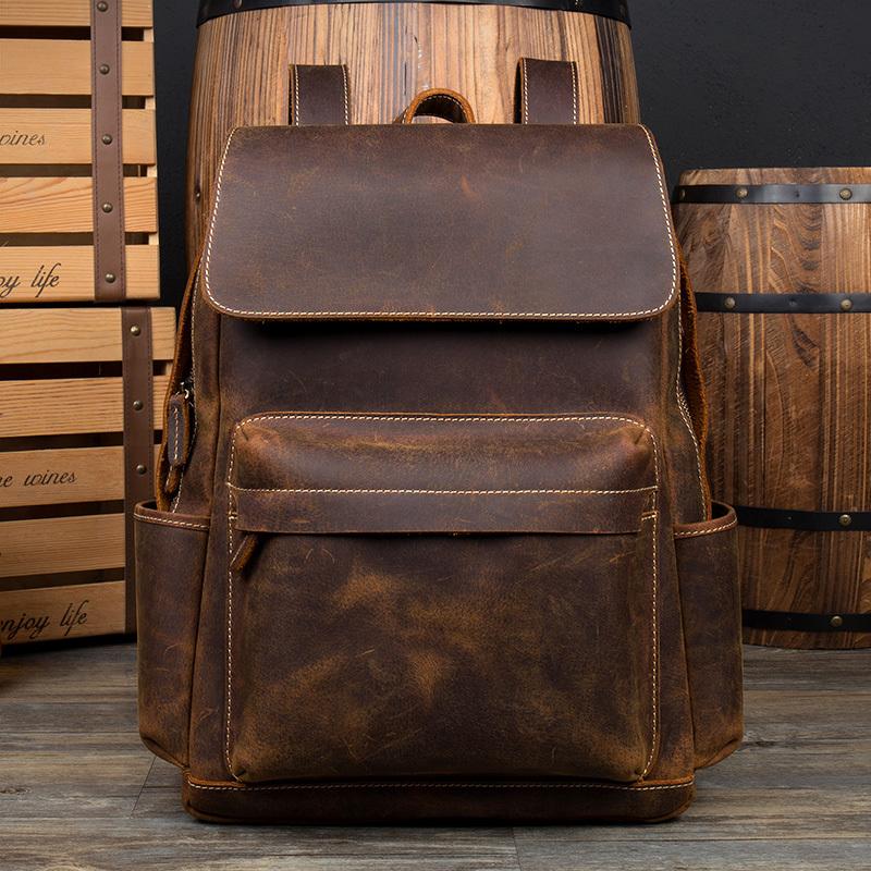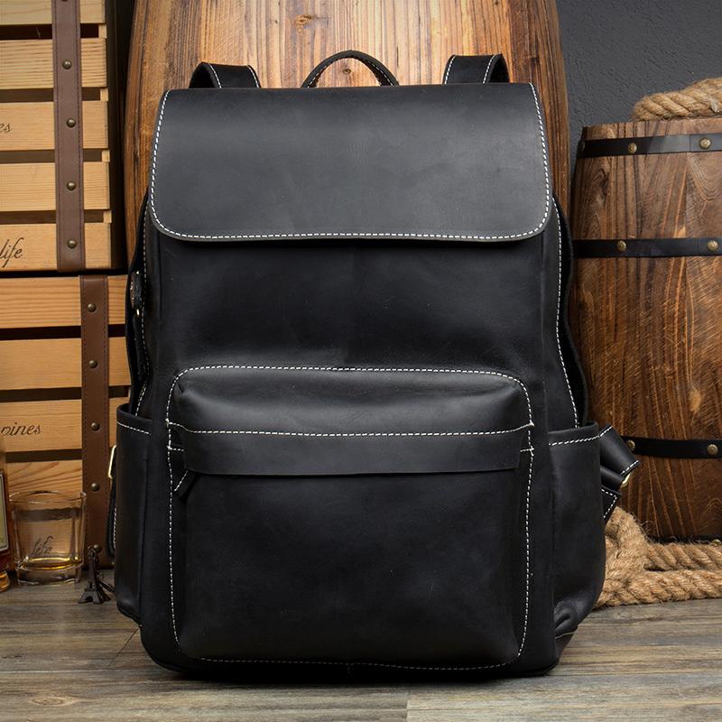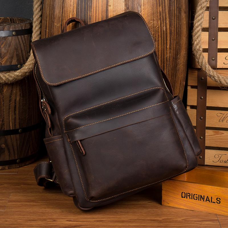Brown Casual Mens Leather 15inches Computer Backpacks Black Travel Backpack College Backpacks for men