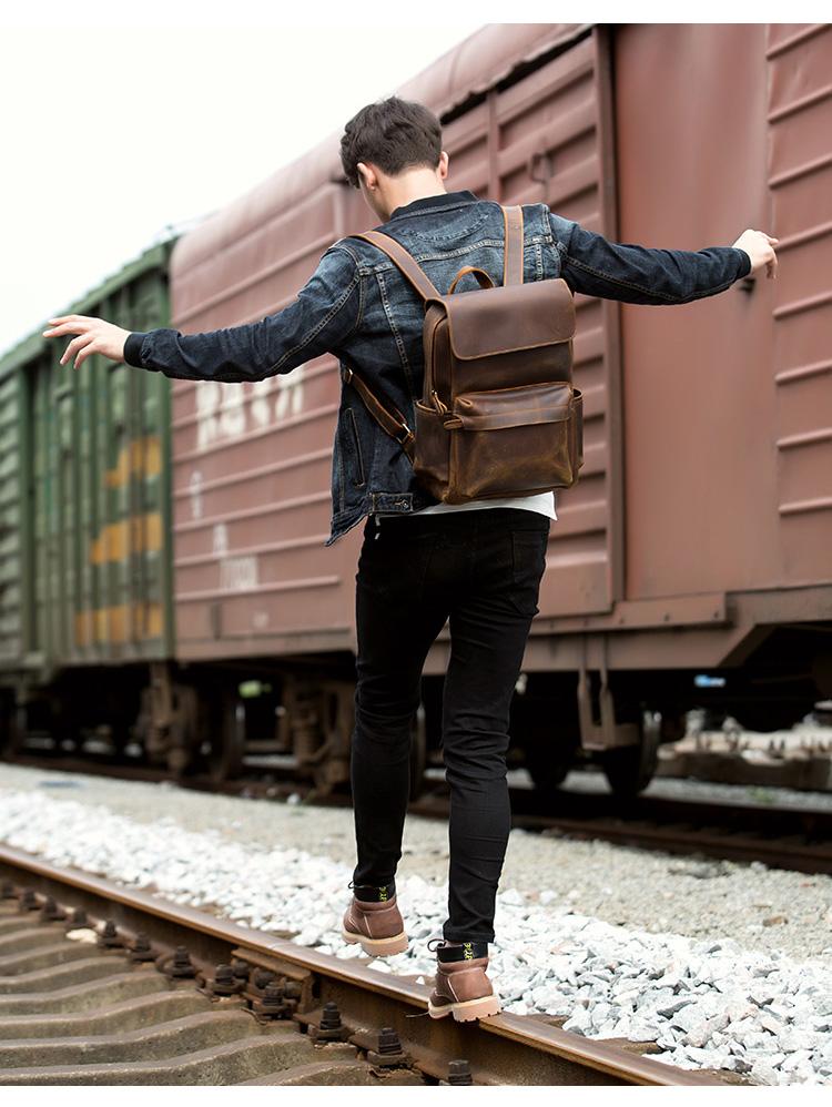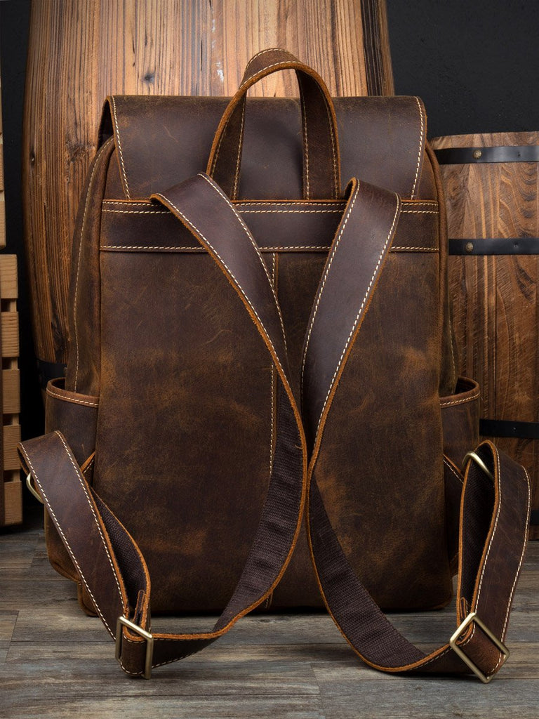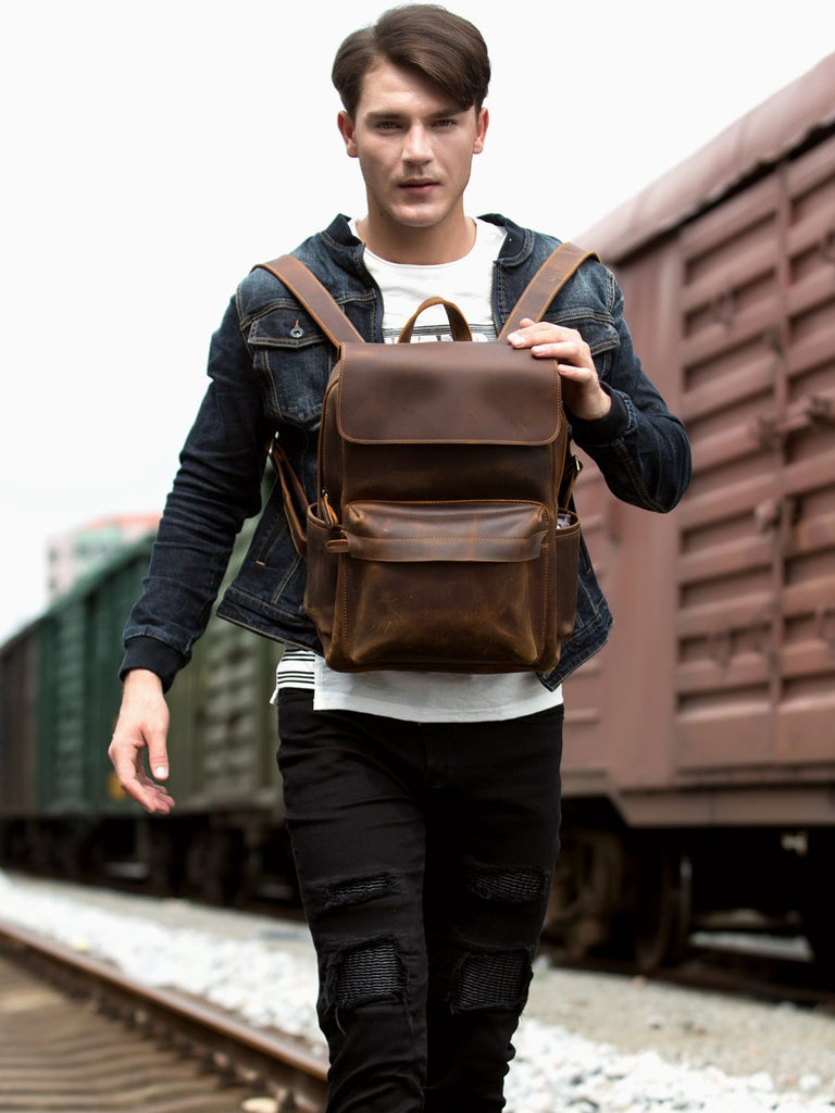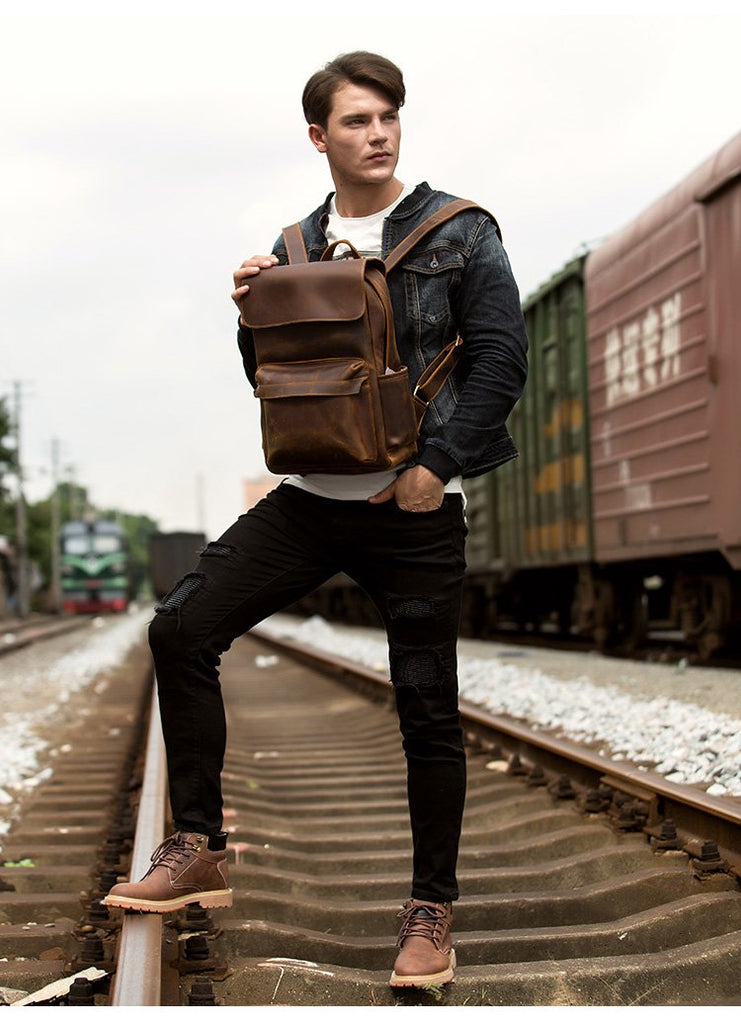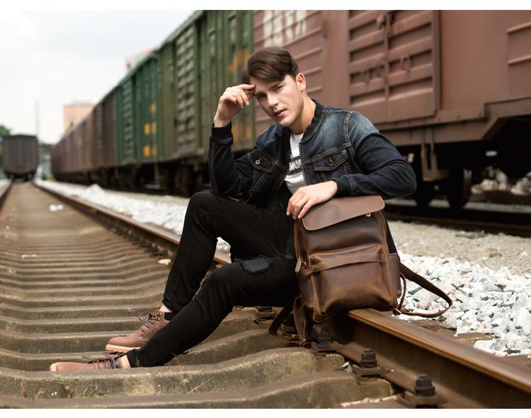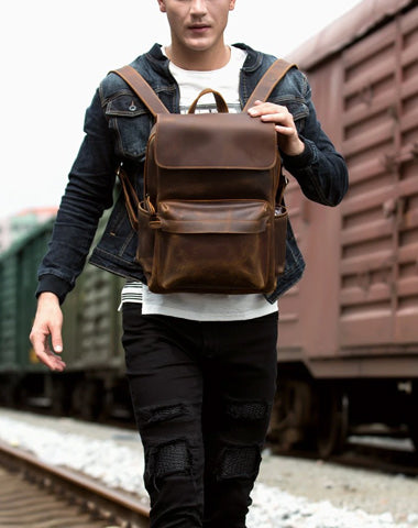 Design: Brown Casual Mens Leather 15-inch Computer Backpacks Black Travel Backpack School Backpacks for men