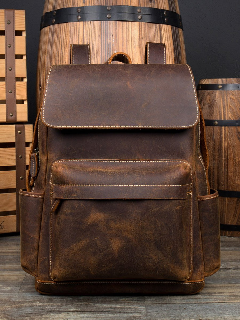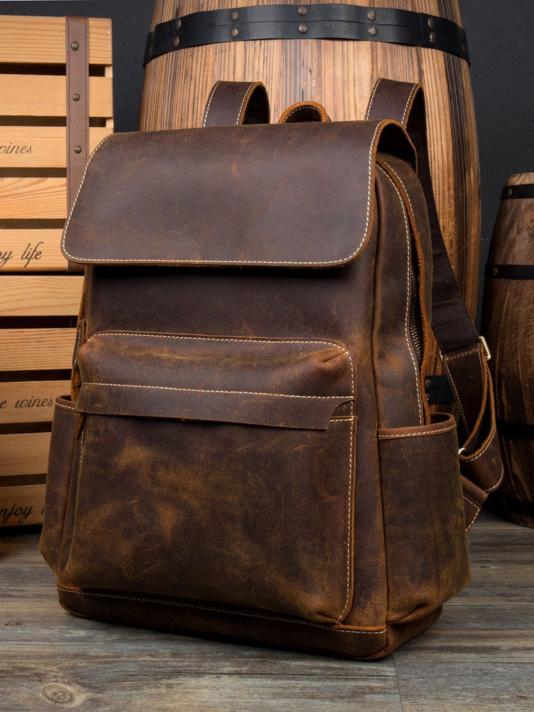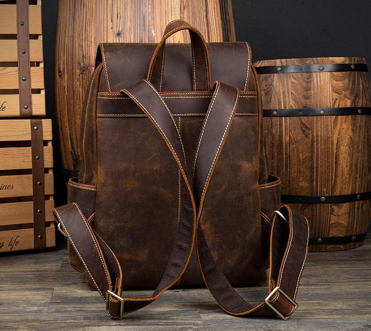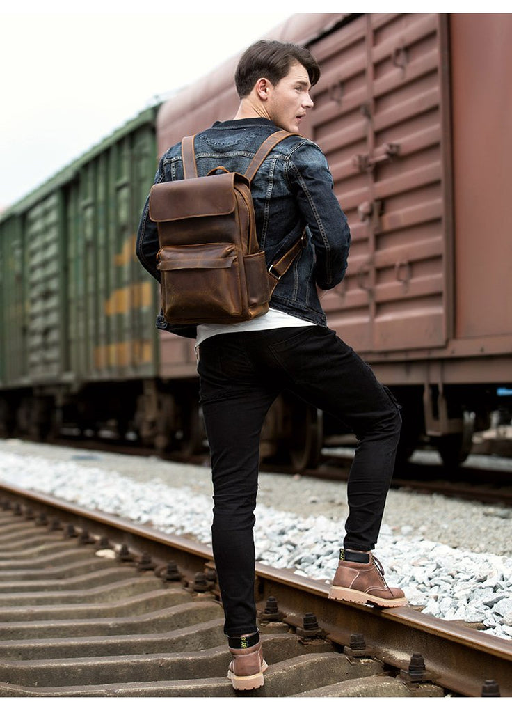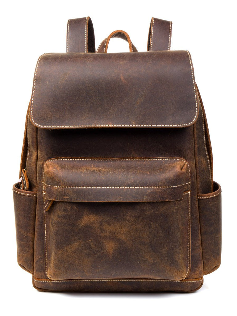 Style: Brown Casual Mens Leather 15-inch Computer Backpacks Black Travel Backpack School Backpacks for men